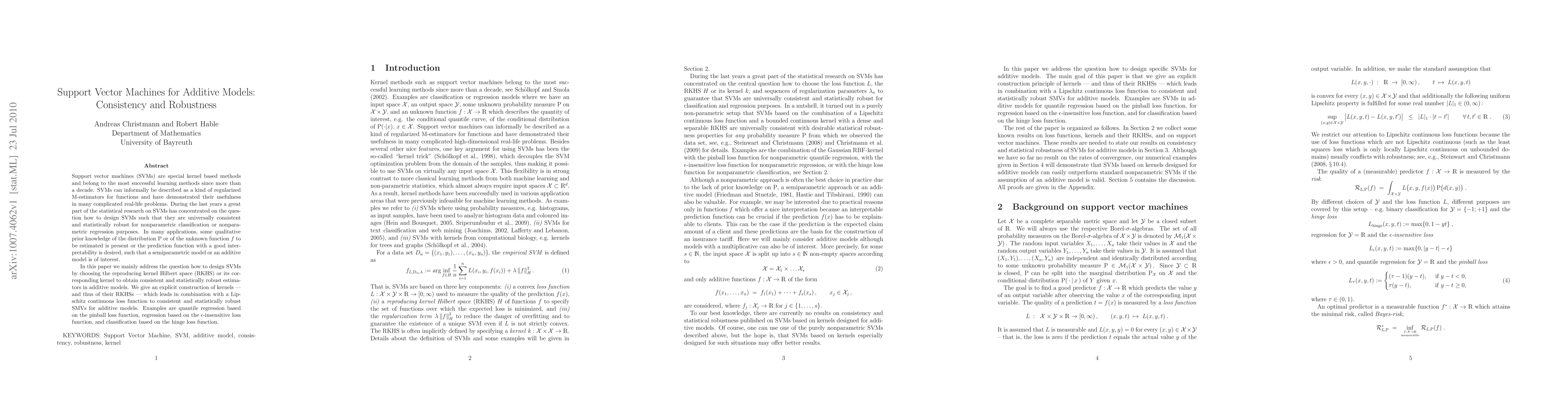 This paper explores the design of Support Vector Machines for additive models, aiming to achieve consistency and robustness in nonparametric classification and regression tasks.