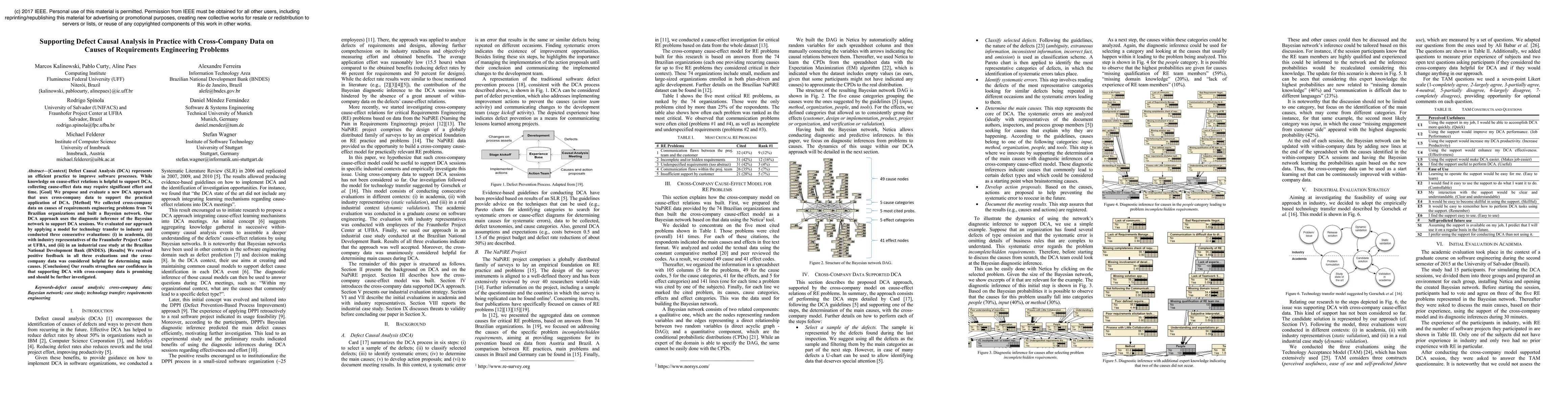 This paper proposes a new Defect Causal Analysis (DCA) approach using cross-company data from Brazilian organizations to improve software processes. The approach, evaluated in academia, industry, and a case study, received positive feedback and demonstrated the utility of cross-company data in identifying main causes of requirements engineering problems.