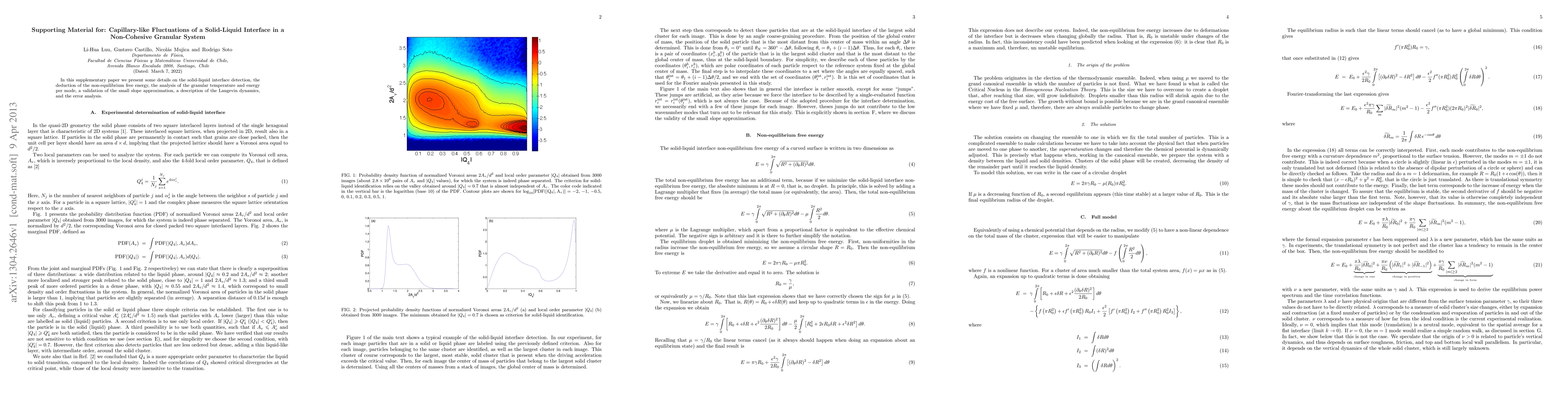 In this supplementary paper we present some details on the solid-liquid interface detection, the deduction of the non-equilibrium free energy, the analysis of the granular temperature and energy per mode, a validation of the small slope approximation, a description of the Langevin dynamics, and the error analysis.