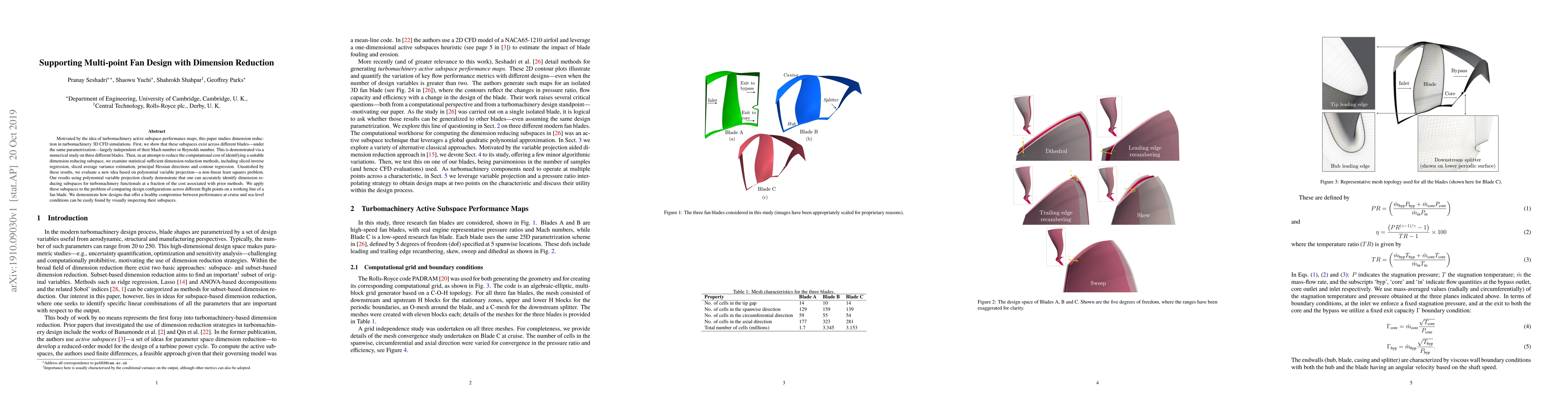 Motivated by the idea of turbomachinery active subspace performance maps, this paper studies dimension reduction in turbomachinery 3D CFD simulations. First, we show that these subspaces exist across different blades---under the same parametrization---largely independent of their Mach number or Reynolds number. This is demonstrated via a numerical study on three different blades. Then, in an attempt to reduce the computational cost of identifying a suitable dimension reducing subspace, we examine statistical sufficient dimension reduction methods, including sliced inverse regression, sliced average variance estimation, principal Hessian directions and contour regression. Unsatisfied by these results, we evaluate a new idea based on polynomial variable projection---a non-linear least squares problem. Our results using polynomial variable projection clearly demonstrate that one can accurately identify dimension reducing subspaces for turbomachinery functionals at a fraction of the cost associated with prior methods. We apply these subspaces to the problem of comparing design configurations across different flight points on a working line of a fan blade. We demonstrate how designs that offer a healthy compromise between performance at cruise and sea-level conditions can be easily found by visually inspecting their subspaces.