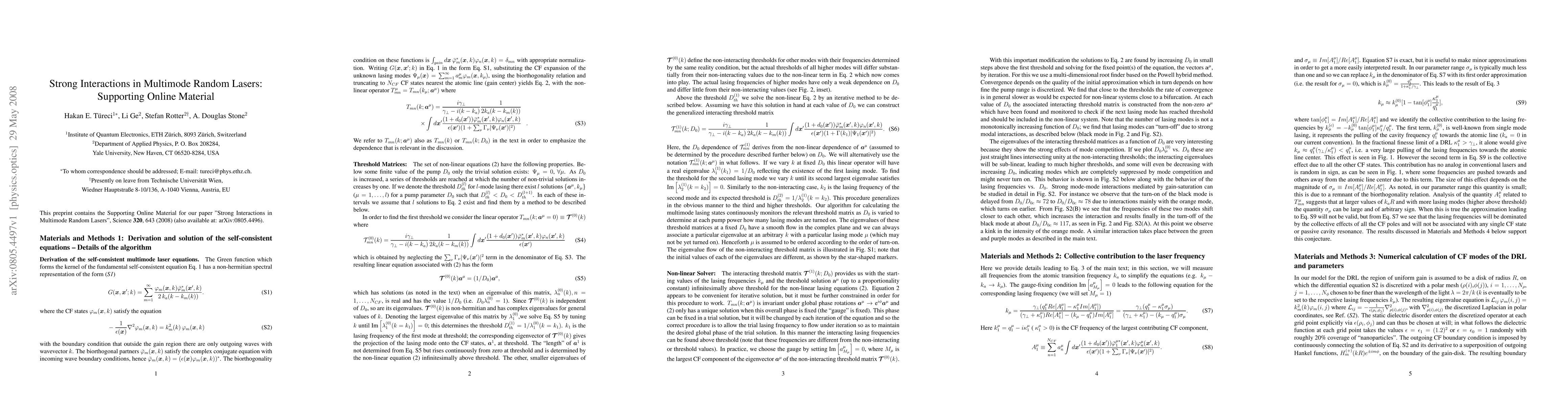 This preprint contains the Supporting Online Material for our paper ''Strong Interactions in Multimode Random Lasers'', Science 320, 643 (2008) (also available at: arXiv:0805.4496).