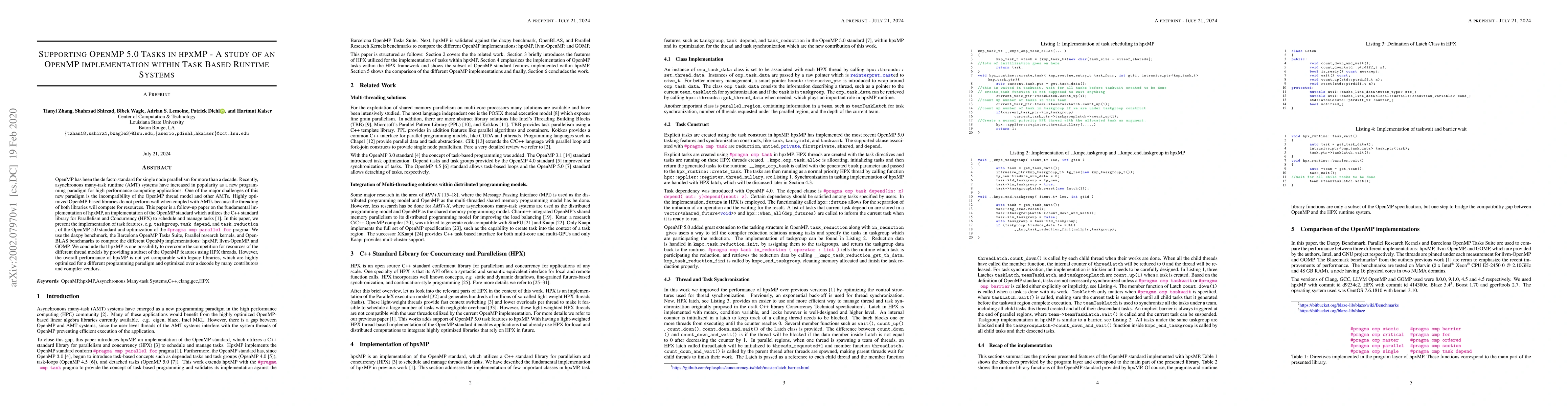 The paper presents an extension of hpxMP to support OpenMP 5.0 task features, demonstrating compatibility between OpenMP and AMT systems.