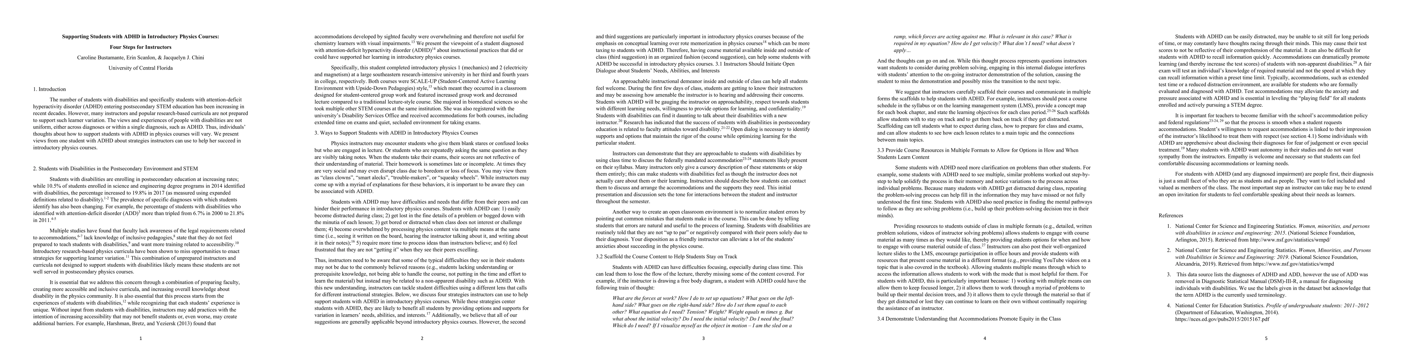 The paper outlines four strategies for instructors to better support students with ADHD in introductory physics courses, based on the experiences of one student with ADHD. The strategies aim to address the unique challenges faced by students with ADHD within the STEM educational context.