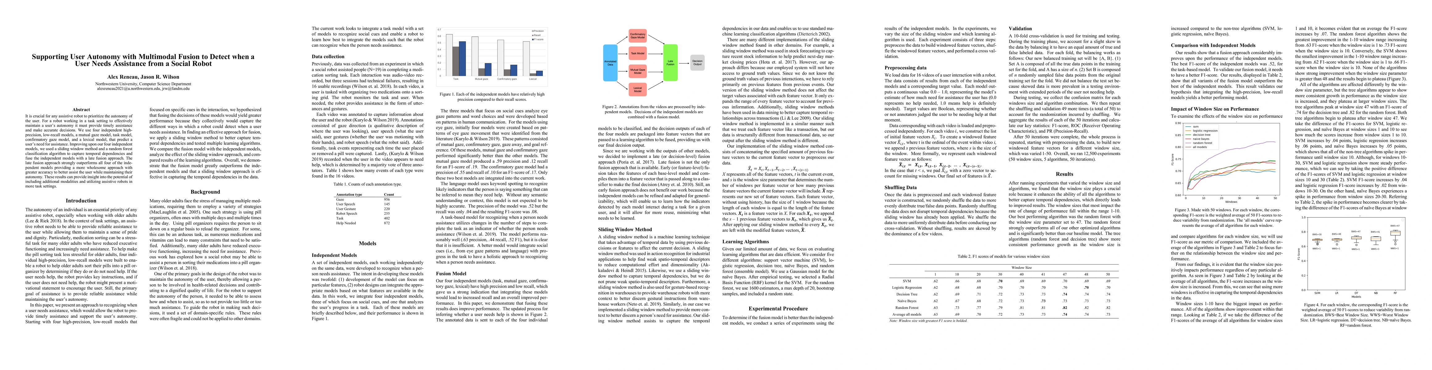 A research paper explores how to support user autonomy when using social robots in task settings by fusing multiple models that predict a user's need for assistance. The late fusion approach outperforms individual models, providing greater accuracy and insights into the potential of assistive robots.
