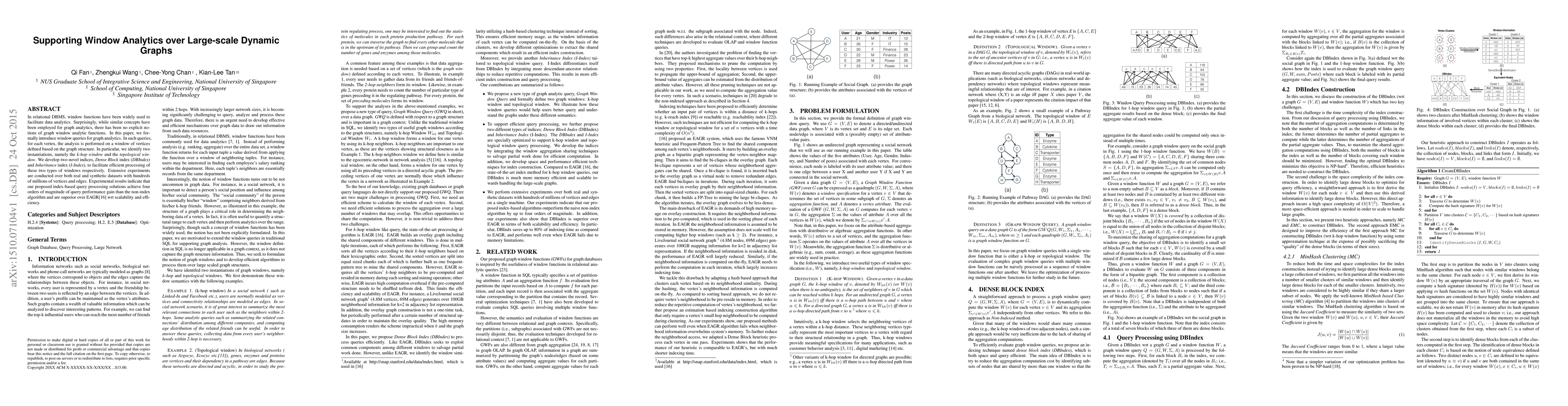 This paper introduces window queries for graph analytics, defining two types of windows: k-hop and topological. It proposes two novel indices, Dense Block index (DBIndex) and Inheritance index (I-Index), to efficiently process these windows, achieving significant performance improvements over non-index methods and outperforming existing EAGR in scalability and efficiency.