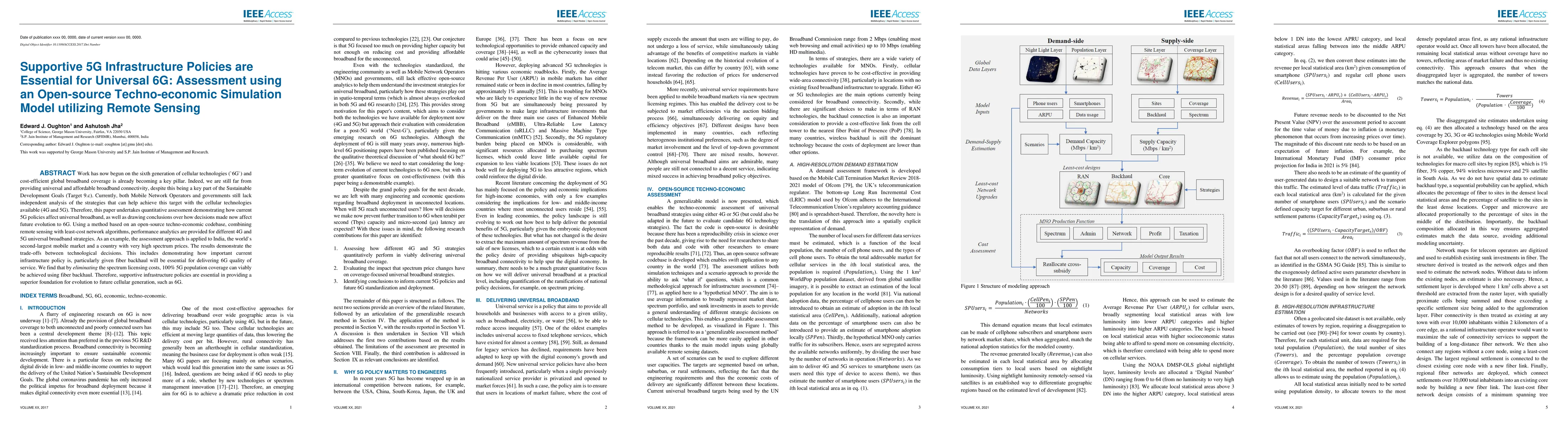 Work has now begun on the sixth generation of cellular technologies (`6G`) and cost-efficient global broadband coverage is already becoming a key pillar. Indeed, we are still far from providing universal and affordable broadband connectivity, despite this being a key part of the Sustainable Development Goals (Target 9.c). Currently, both Mobile Network Operators and governments still lack independent analysis of the strategies that can help achieve this target with the cellular technologies available (4G and 5G). Therefore, this paper undertakes quantitative assessment demonstrating how current 5G policies affect universal broadband, as well as drawing conclusions over how decisions made now affect future evolution to 6G. Using a method based on an open-source techno-economic codebase, combining remote sensing with least-cost network algorithms, performance analytics are provided for different 4G and 5G universal broadband strategies. As an example, the assessment approach is applied to India, the world`s second-largest mobile market and a country with very high spectrum prices. The results demonstrate the trade-offs between technological decisions. This includes demonstrating how important current infrastructure policy is, particularly given fiber backhaul will be essential for delivering 6G quality of service. We find that by eliminating the spectrum licensing costs, 100% 5G population coverage can viably be achieved using fiber backhaul. Therefore, supportive infrastructure policies are essential in providing a superior foundation for evolution to future cellular generation, such as 6G.