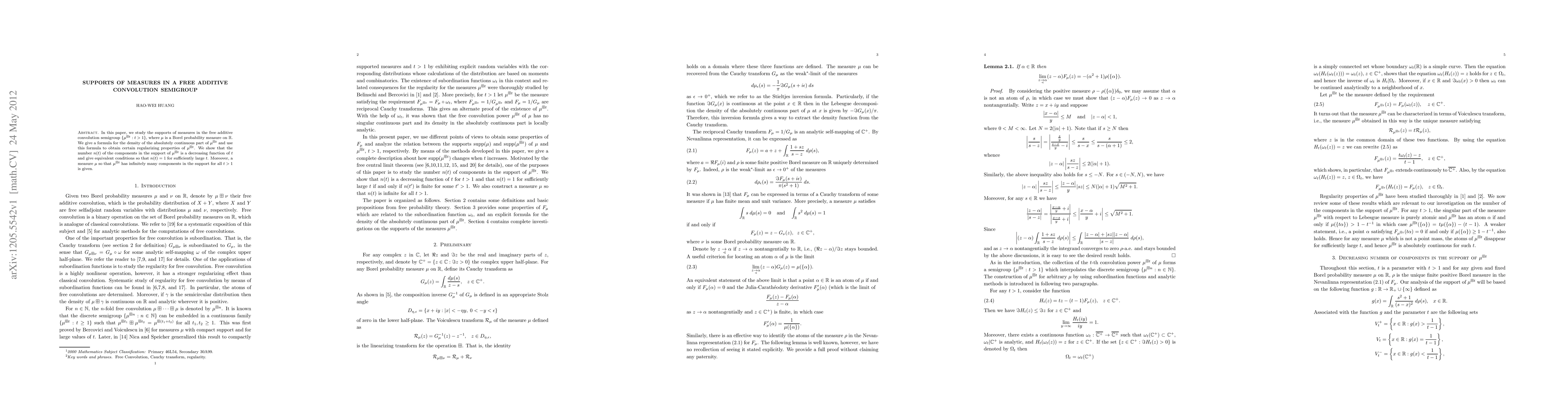 The study of free additive convolution semigroups reveals that measures with infinitely many components in their supports have specific properties, and a formula is provided to analyze the density of their absolutely continuous parts.