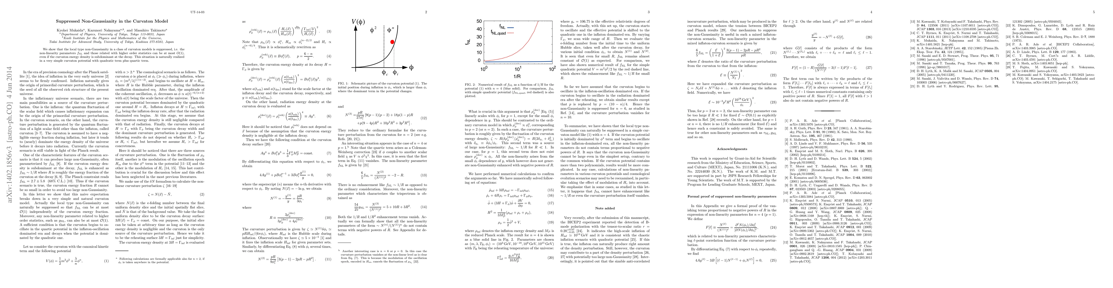 This paper demonstrates that local non-Gaussianity in certain curvaton models is suppressed, with non-linearity parameters f_{NL} and higher-order statistics constrained to O(1), even when the curvaton's energy density is minor at decay, achieved through a simple potential combining quadratic and quartic terms.