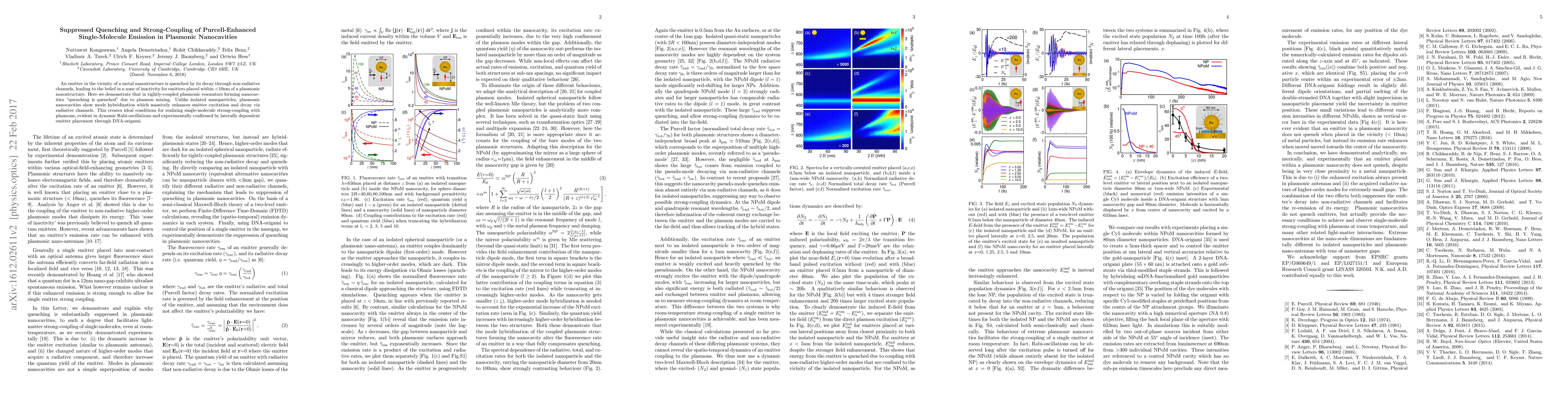 This study reveals that quenching of a single-molecule's emission near plasmonic nanostructures can be suppressed by plasmon mixing in tightly-coupled nanocavities, enabling strong coupling and enhanced radiative decay. Experimental evidence includes dynamic Rabi-oscillations and position-dependent effects via DNA-origami.