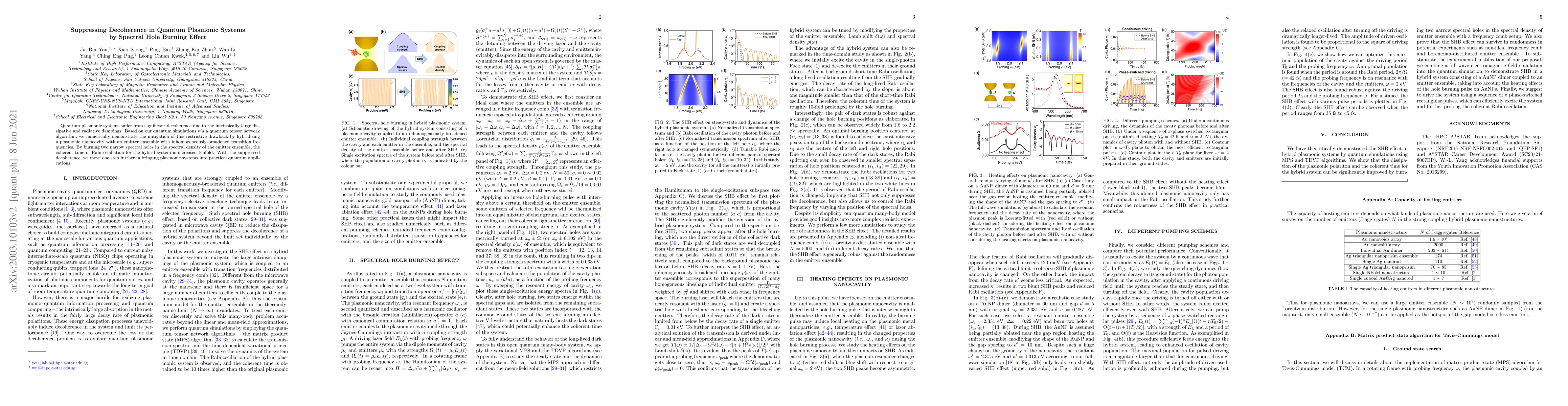 Researchers used quantum simulations to show that burning narrow spectral holes in a material can suppress decoherence in quantum plasmonic systems, increasing the coherent time of Rabi oscillation tenfold.