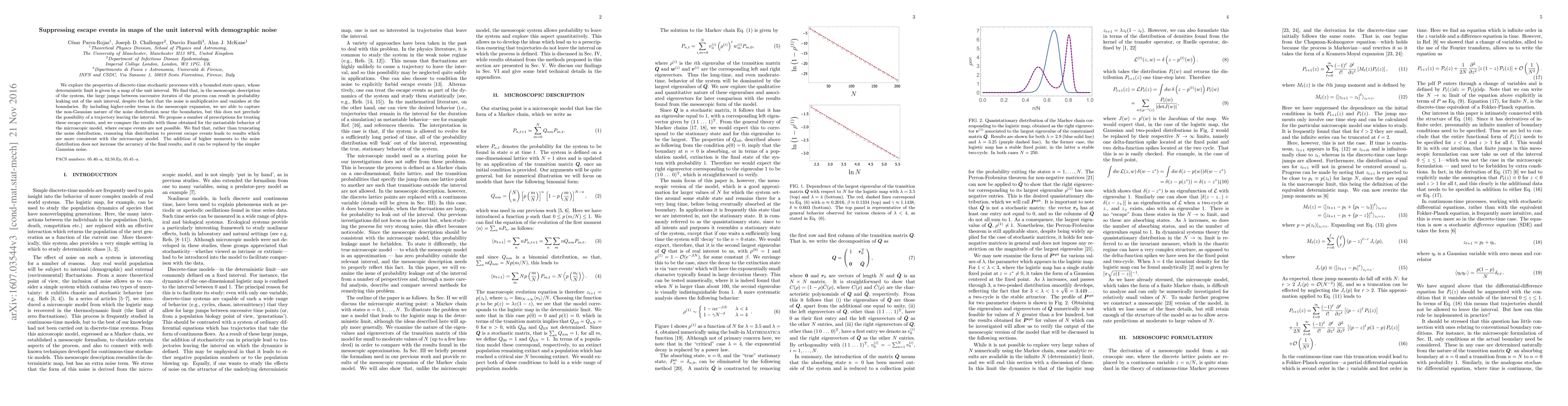 We explore the properties of discrete-time stochastic processes with a bounded state space, whose deterministic limit is given by a map of the unit interval. We find that, in the mesoscopic description of the system, the large jumps between successive iterates of the process can result in probability leaking out of the unit interval, despite the fact that the noise is multiplicative and vanishes at the boundaries. By including higher-order terms in the mesoscopic expansion, we are able to capture the non-Gaussian nature of the noise distribution near the boundaries, but this does not preclude the possibility of a trajectory leaving the interval. We propose a number of prescriptions for treating these escape events, and we compare the results with those obtained for the metastable behavior of the microscopic model, where escape events are not possible. We find that, rather than truncating the noise distribution, censoring this distribution to prevent escape events leads to results which are more consistent with the microscopic model. The addition of higher moments to the noise distribution does not increase the accuracy of the final results, and it can be replaced by the simpler Gaussian noise.