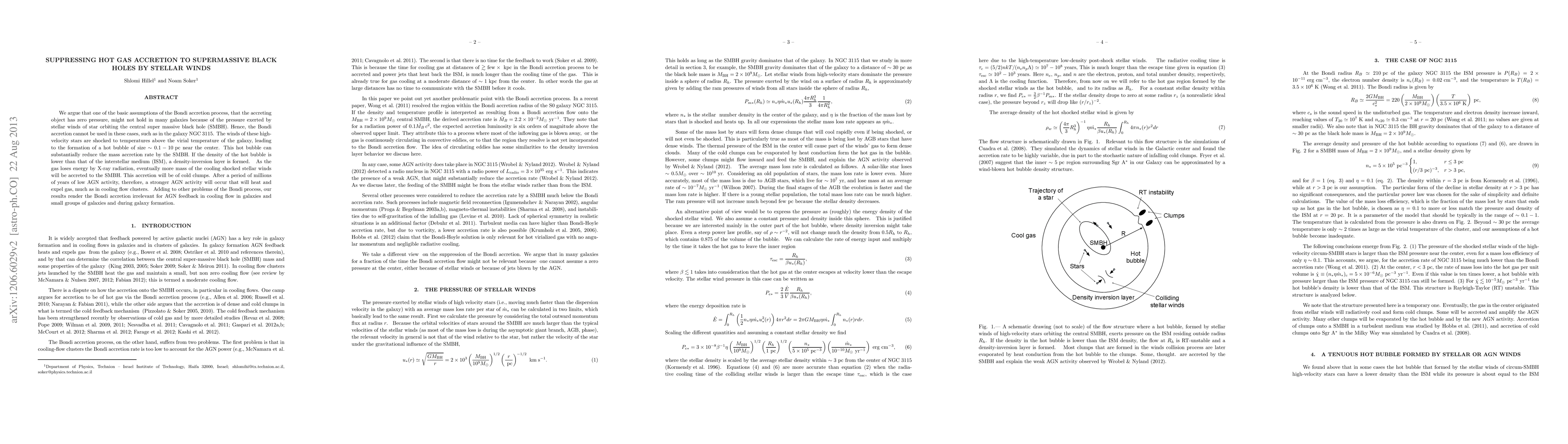 This paper argues that stellar winds from stars orbiting supermassive black holes can suppress hot gas accretion through the formation of hot bubbles, invalidating the zero-pressure assumption in the Bondi accretion process. This results in reduced mass accretion rates and potentially leads to periods of AGN activity followed by gas expulsion.
