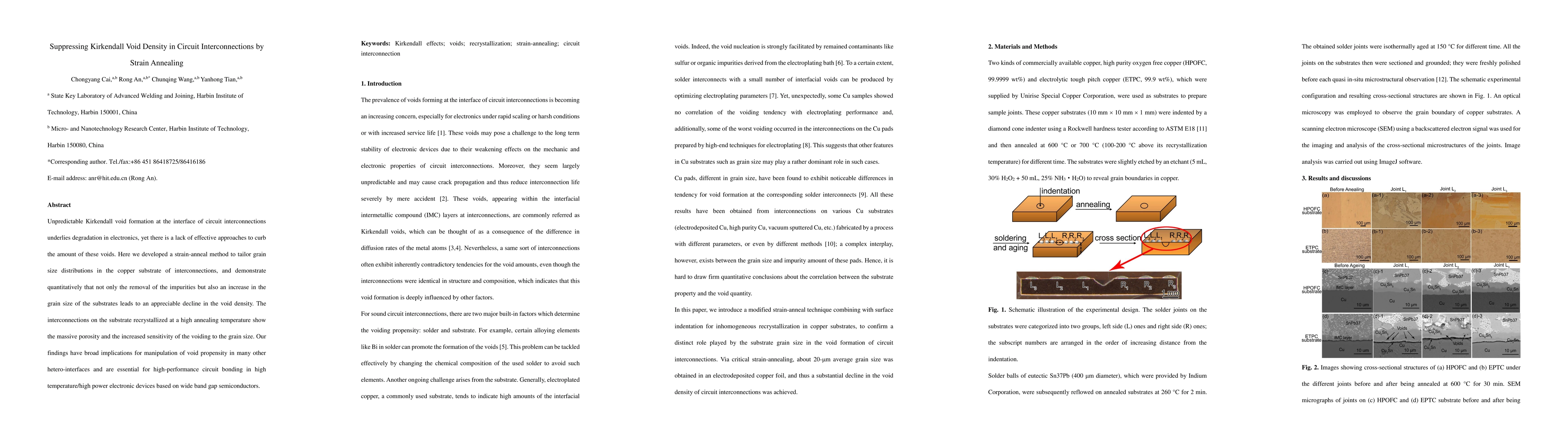 The research introduces a strain-anneal method to reduce Kirkendall voids in circuit interconnections by controlling copper substrate grain size. This approach significantly decreases void density, crucial for high-performance electronics, particularly those using wide band gap semiconductors.