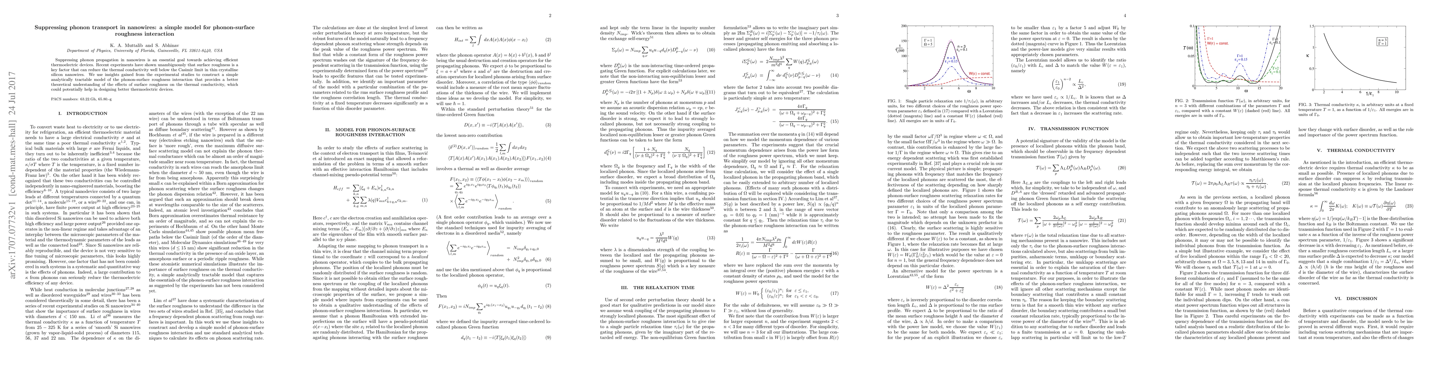 This paper develops a simple model to understand how surface roughness in nanowires suppresses phonon transport, which is crucial for enhancing thermoelectric efficiency. The model provides insights into the interaction between phonons and surface roughness, potentially aiding in the design of advanced thermoelectric devices.