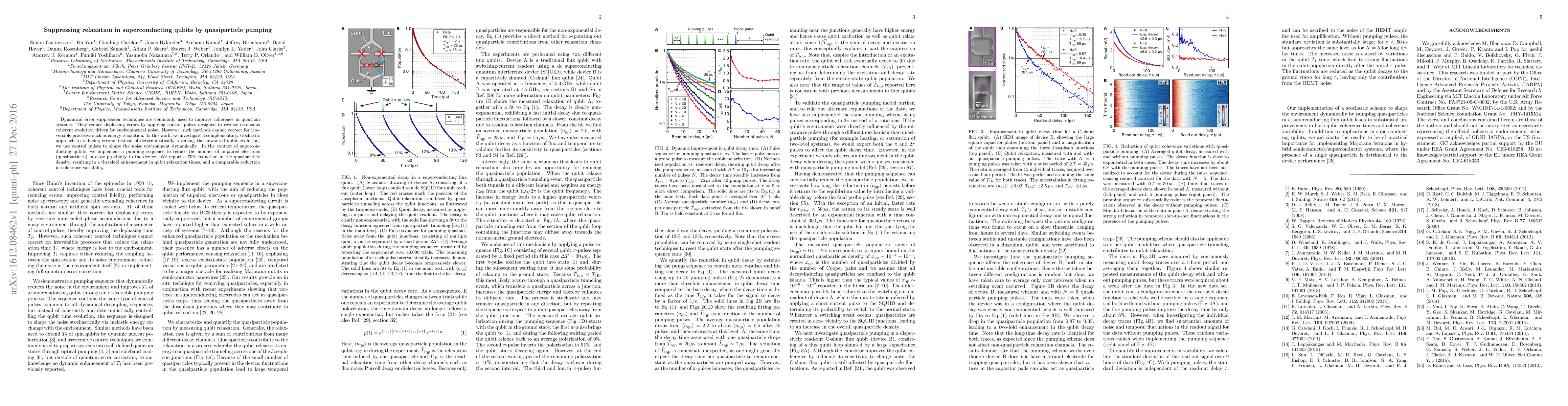 Dynamical error suppression techniques are commonly used to improve coherence in quantum systems. They reduce dephasing errors by applying control pulses designed to reverse erroneous coherent evolution driven by environmental noise. However, such methods cannot correct for irreversible processes such as energy relaxation. In this work, we investigate a complementary, stochastic approach to reducing errors: instead of deterministically reversing the unwanted qubit evolution, we use control pulses to shape the noise environment dynamically. In the context of superconducting qubits, we implement a pumping sequence to reduce the number of unpaired electrons (quasiparticles) in close proximity to the device. We report a 70% reduction in the quasiparticle density, resulting in a threefold enhancement in qubit relaxation times, and a comparable reduction in coherence variability.