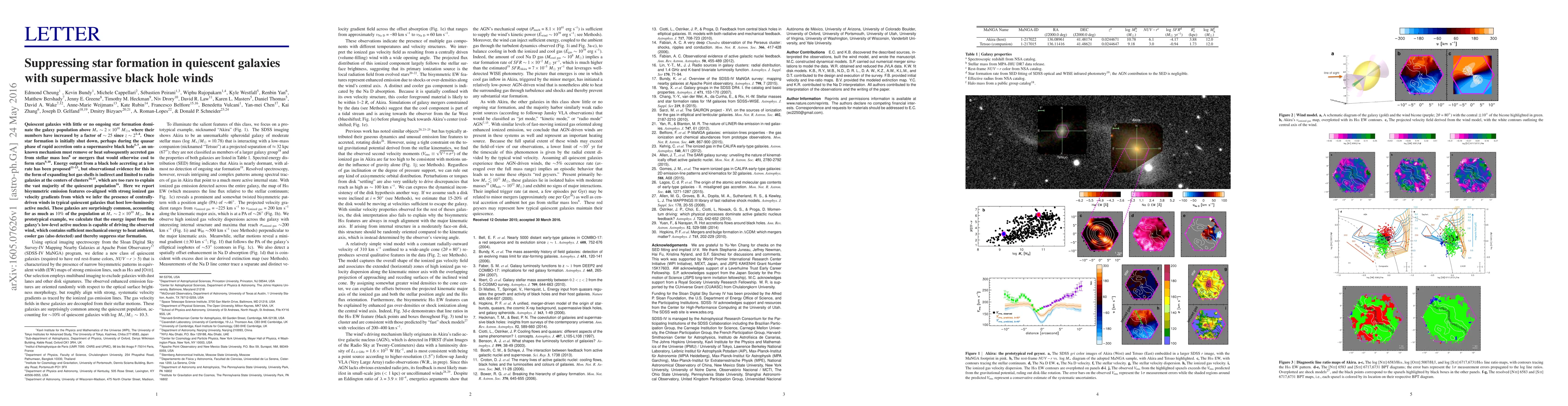 Quiescent galaxies with little or no ongoing star formation dominate the galaxy population above $M_{*}\sim 2 \times 10^{10}~M_{\odot}$, where their numbers have increased by a factor of $\sim25$ since $z\sim2$. Once star formation is initially shut down, perhaps during the quasar phase of rapid accretion onto a supermassive black hole, an unknown mechanism must remove or heat subsequently accreted gas from stellar mass loss or mergers that would otherwise cool to form stars. Energy output from a black hole accreting at a low rate has been proposed, but observational evidence for this in the form of expanding hot gas shells is indirect and limited to radio galaxies at the centers of clusters, which are too rare to explain the vast majority of the quiescent population. Here we report bisymmetric emission features co-aligned with strong ionized gas velocity gradients from which we infer the presence of centrally-driven winds in typical quiescent galaxies that host low-luminosity active nuclei. These galaxies are surprisingly common, accounting for as much as $10\%$ of the population at $M_* \sim 2 \times 10^{10}~ M_{\odot}$. In a prototypical example, we calculate that the energy input from the galaxy's low-level active nucleus is capable of driving the observed wind, which contains sufficient mechanical energy to heat ambient, cooler gas (also detected) and thereby suppress star formation.