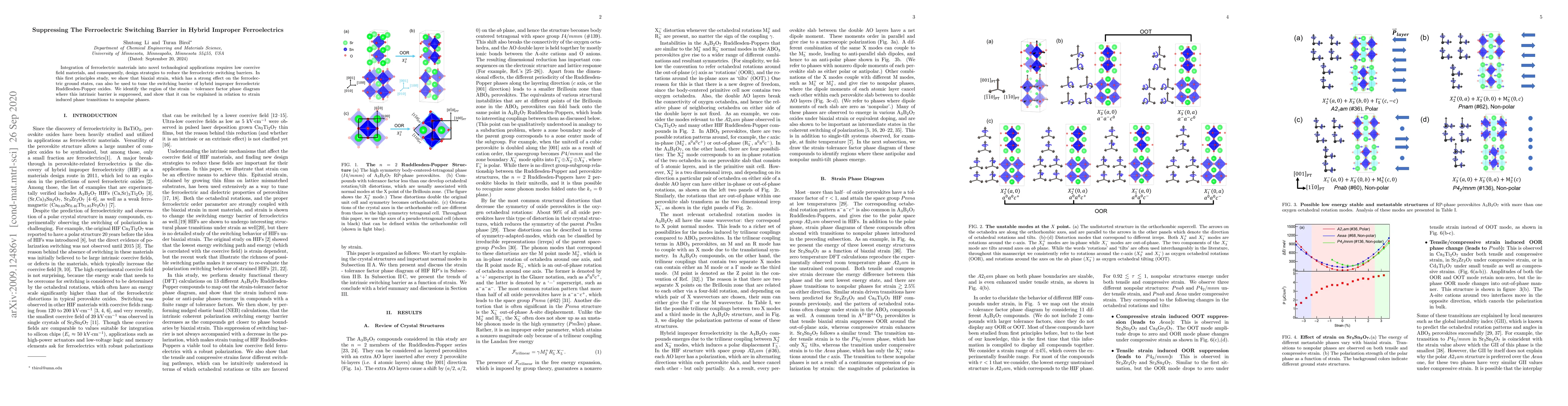 This study demonstrates that biaxial strain can effectively reduce the ferroelectric switching barrier in hybrid improper ferroelectric Ruddlesden-Popper oxides, identifying a specific region in the strain-tolerance factor phase diagram where this suppression occurs, linked to strain-induced phase transitions to nonpolar phases.