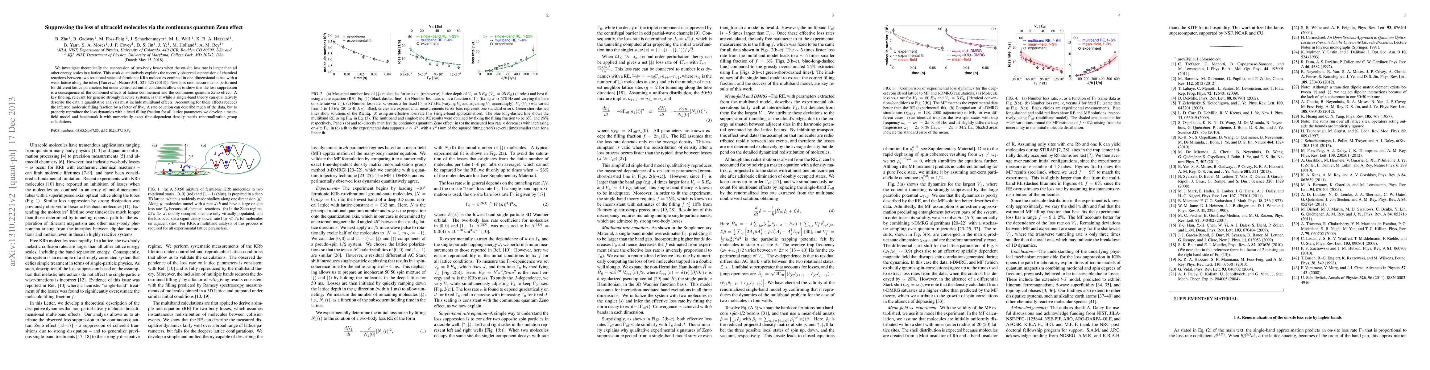 We investigate theoretically the suppression of two-body losses when the on-site loss rate is larger than all other energy scales in a lattice. This work quantitatively explains the recently observed suppression of chemical reactions between two rotational states of fermionic KRb molecules confined in one-dimensional tubes with a weak lattice along the tubes [Yan et al., Nature 501, 521-525 (2013)]. New loss rate measurements performed for different lattice parameters but under controlled initial conditions allow us to show that the loss suppression is a consequence of the combined effects of lattice confinement and the continuous quantum Zeno effect. A key finding, relevant for generic strongly reactive systems, is that while a single-band theory can qualitatively describe the data, a quantitative analysis must include multiband effects. Accounting for these effects reduces the inferred molecule filling fraction by a factor of five. A rate equation can describe much of the data, but to properly reproduce the loss dynamics with a fixed filling fraction for all lattice parameters we develop a mean-field model and benchmark it with numerically exact time-dependent density matrix renormalization group calculations.