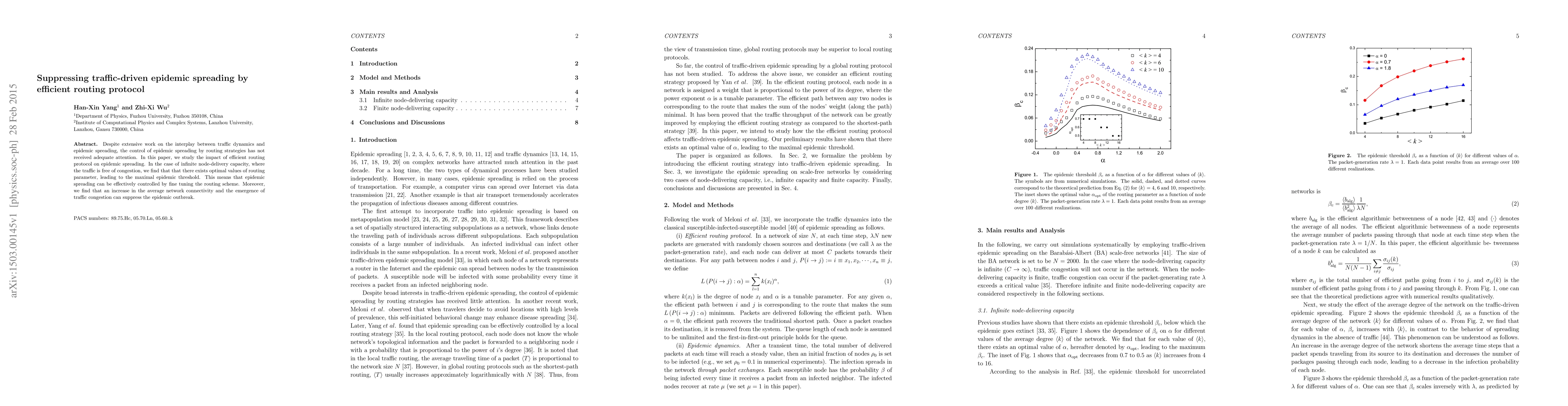 This paper explores how efficient routing protocols can control epidemic spreading in networks, finding optimal routing parameters to maximize the epidemic threshold. It concludes that increased network connectivity and traffic congestion can suppress epidemic outbreaks.