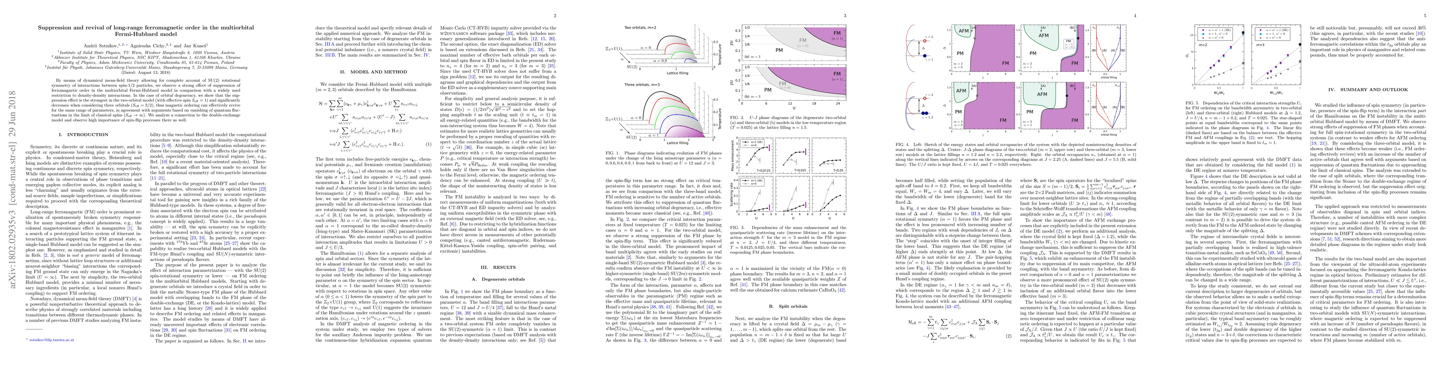 By means of dynamical mean-field theory allowing for complete account of SU(2) rotational symmetry of interactions between spin-1/2 particles, we observe a strong effect of suppression of ferromagnetic order in the multiorbital Fermi-Hubbard model in comparison with a widely used restriction to density-density interactions. In the case of orbital degeneracy, we show that the suppression effect is the strongest in the two-orbital model (with effective spin $S_{\rm eff}=1$) and significantly decreases when considering three orbitals ($S_{\rm eff}=3/2$), thus magnetic ordering can effectively revive for the same range of parameters, in agreement with arguments based on vanishing of quantum fluctuations in the limit of classical spins ($S_{\rm eff}\to\infty$). We analyze a connection to the double-exchange model and observe high importance of spin-flip processes there as well.