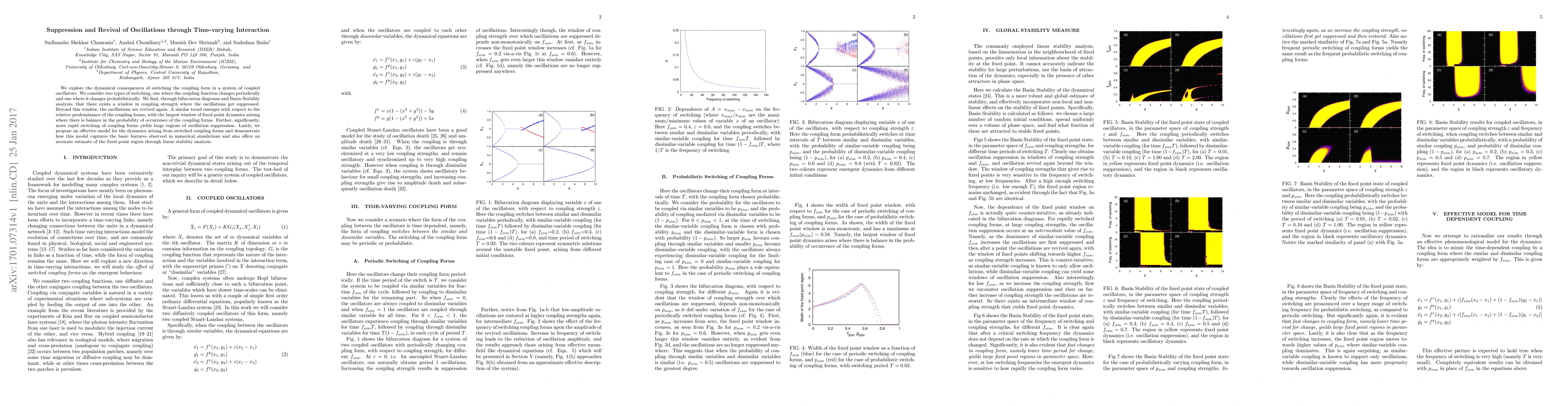A study shows that oscillations in a system of coupled oscillators can be suppressed when switching between different coupling forms, but these suppressions can be revived with rapid enough switching. The findings highlight the importance of balance in the probability of occurrence of these coupling forms.