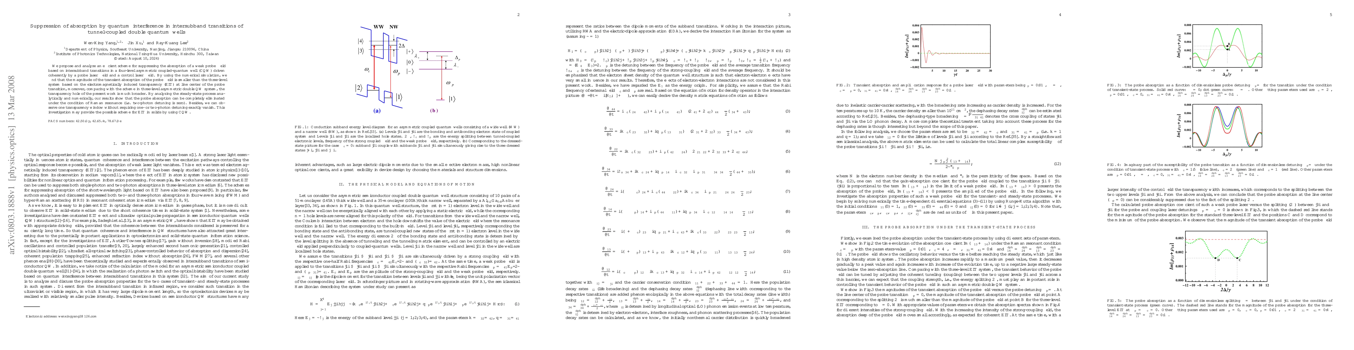 Researchers propose a scheme to suppress absorption of a probe field using quantum interference in tunnel-coupled double quantum wells, achieving broader transparency windows than previous methods.