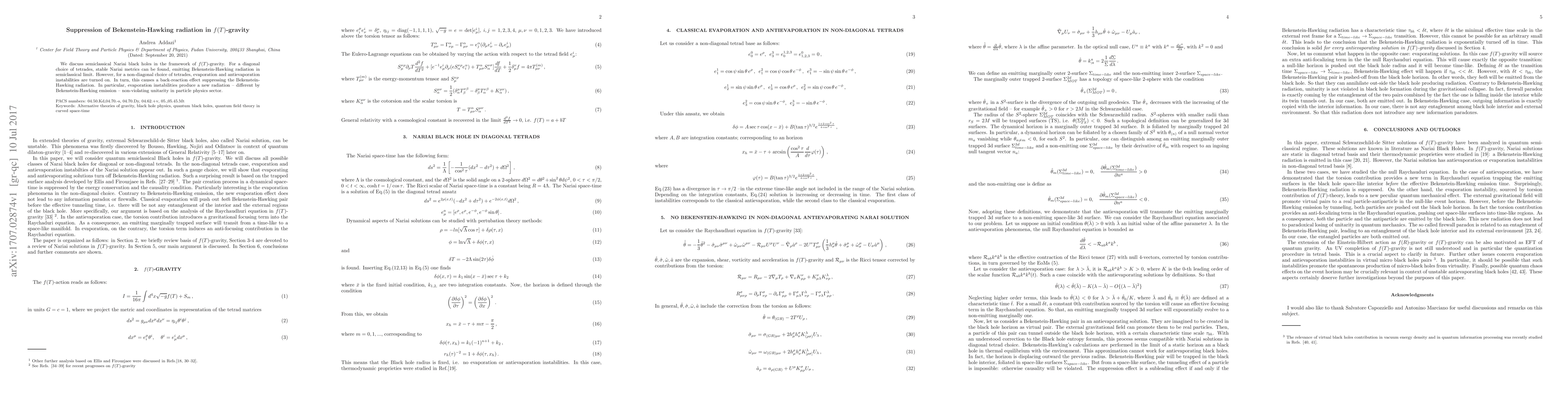 This paper explores semiclassical Nariai black holes in $f(T)$-gravity, revealing that while diagonal tetrades allow for Bekenstein-Hawking radiation, non-diagonal choices lead to evaporation and antievaporation instabilities that suppress this radiation, instead producing a new type of radiation violating unitarity.