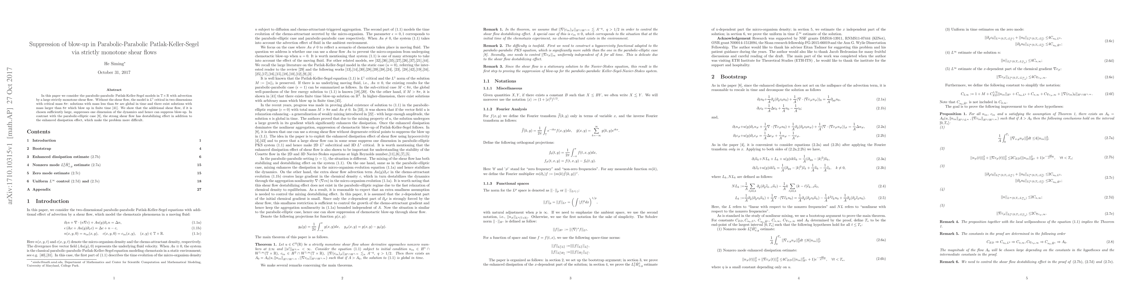 In this paper we consider the parabolic-parabolic Patlak-Keller-Segel models in $\mathbb{T}\times\mathbb{R}$ with advection by a large strictly monotone shear flow. Without the shear flow, the model is $L^1$ critical in two dimensions with critical mass $8\pi$: solutions with mass less than $8\pi$ are global in time and there exist solutions with mass larger than $8 \pi$ which blow up in finite time \cite{Schweyer14}. We show that the additional shear flow, if it is chosen sufficiently large, suppresses one dimension of the dynamics and hence can suppress blow-up. In contrast with the parabolic-elliptic case \cite{BedrossianHe16}, the strong shear flow has destabilizing effect in addition to the enhanced dissipation effect, which make the problem more difficult.