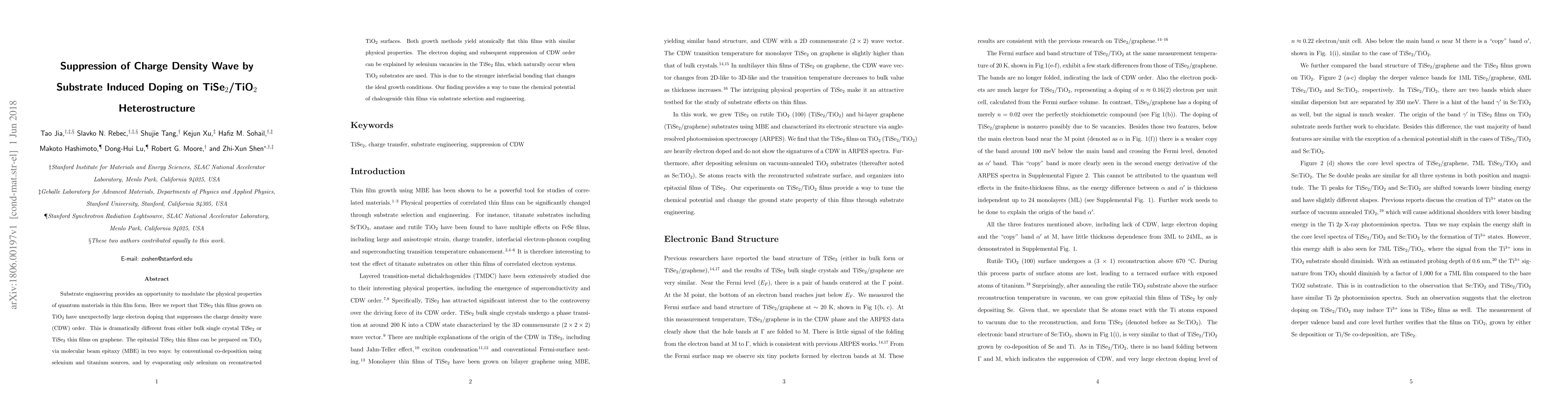 This study demonstrates that TiSe$_2$ thin films grown on TiO$_2$ substrates exhibit significant electron doping via selenium vacancies, which suppresses charge density wave order, contrasting with TiSe$_2$ on other substrates. This substrate-induced doping provides a method to modulate the properties of chalcogenide thin films.