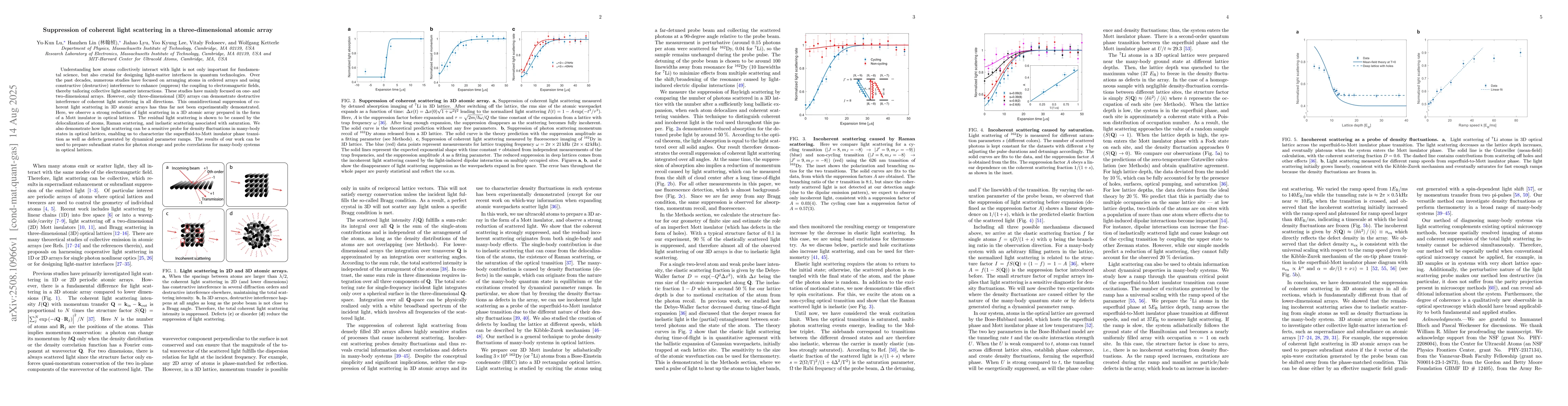 Understanding how atoms collectively interact with light is not only important for fundamental science, but also crucial for designing light-matter interfaces in quantum technologies. Over the past decades, numerous studies have focused on arranging atoms in ordered arrays and using constructive (destructive) interference to enhance (suppress) the coupling to electromagnetic fields, thereby tailoring collective light-matter interactions. These studies have mainly focused on one- and two-dimensional arrays. However, only three-dimensional (3D) arrays can demonstrate destructive interference of coherent light scattering in all directions. This omnidirectional suppression of coherent light scattering in 3D atomic arrays has thus far not been experimentally demonstrated. Here, we observe a strong reduction of light scattering in a 3D atomic array prepared in the form of a Mott insulator in optical lattices. The residual light scattering is shown to be caused by the delocalization of atoms, Raman scattering, and inelastic scattering associated with saturation. We also demonstrate how light scattering can be a sensitive probe for density fluctuations in many-body states in optical lattices, enabling us to characterize the superfluid-to-Mott insulator phase transition as well as defects generated by dynamical parameter ramps. The results of our work can be used to prepare subradiant states for photon storage and probe correlations for many-body systems in optical lattices.