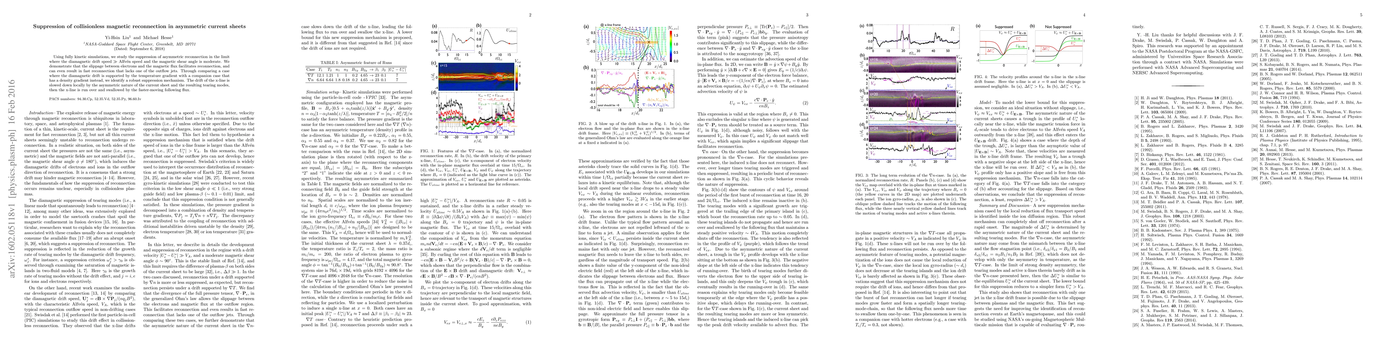 This paper uses kinetic simulations to explore how reconnection in asymmetric current sheets is suppressed when diamagnetic drift dominates over Alfven speed. It finds that electron slippage and the presence of tearing modes slow down the reconnection x-line, leading to a suppression mechanism that is more pronounced when the current sheet's asymmetry is driven by a density gradient rather than a temperature gradient.