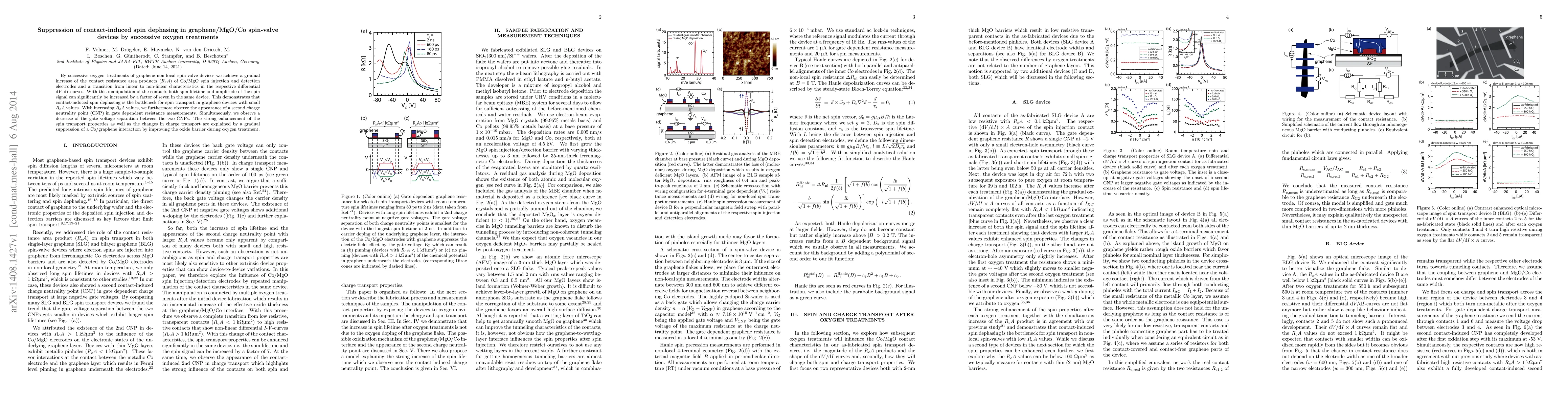 Researchers improved spin transport in graphene/MgO/Co devices by increasing contact resistance area products through successive oxygen treatments, significantly boosting spin signal amplitude and lifetime.