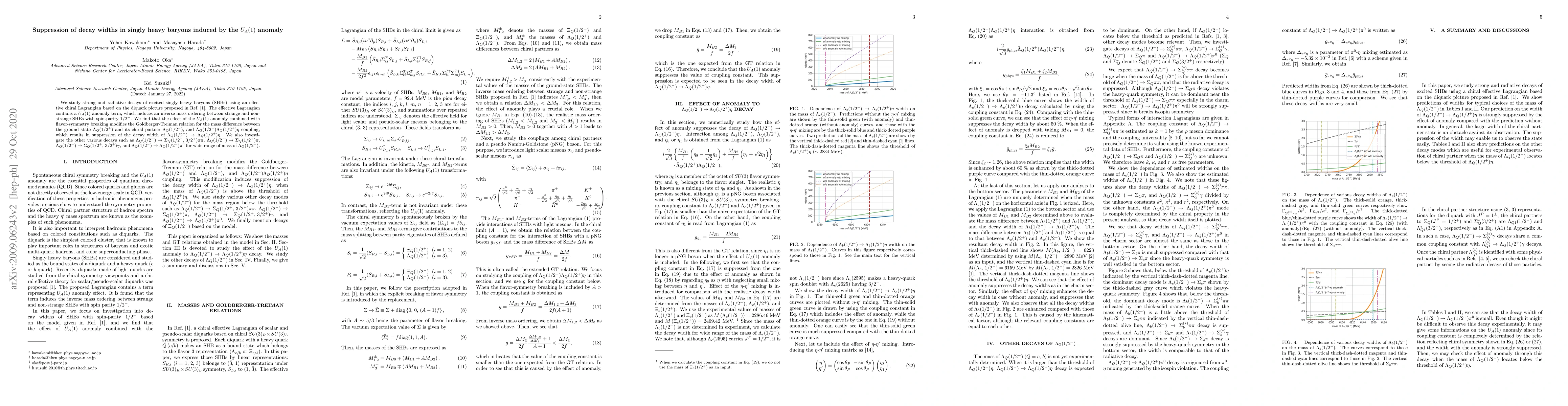 This paper investigates the strong and radiative decays of excited singly heavy baryons using an effective chiral Lagrangian, focusing on the $U_A(1)$ anomaly's impact. The $U_A(1)$ anomaly, combined with flavor-symmetry breaking, suppresses the decay width of $\Lambda_Q (1/2^-) \to \Lambda_Q (1/2^+) \eta$ due to modifications in the Goldberger-Treiman relation.