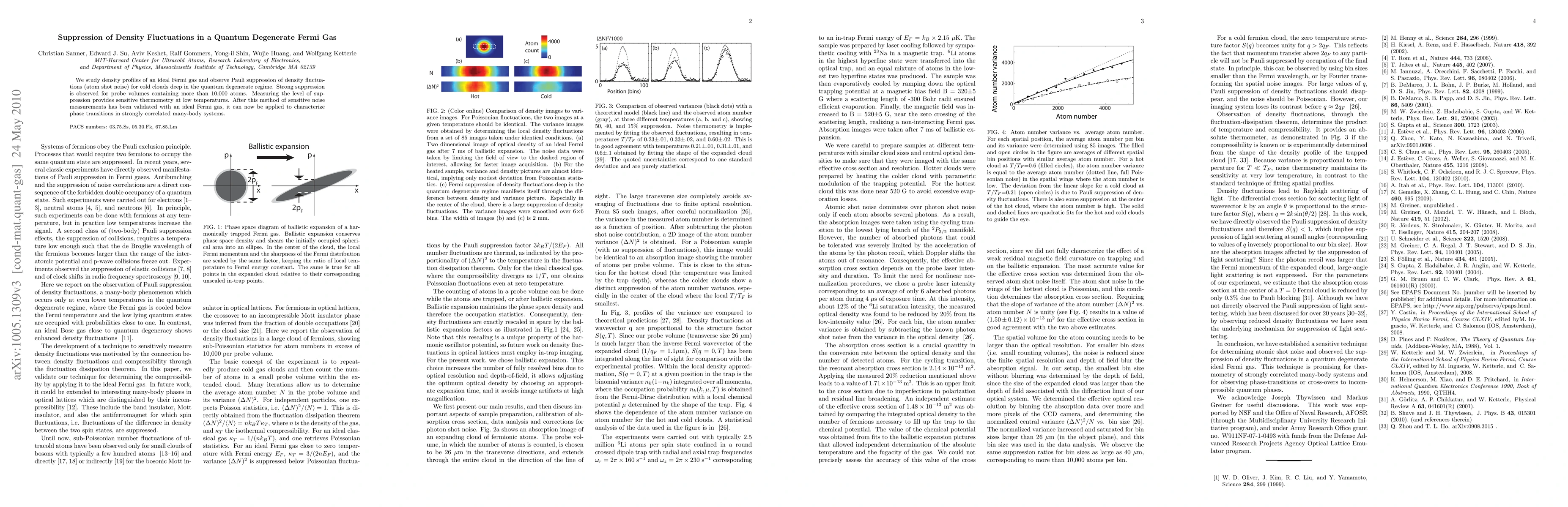 This research investigates density profiles in an ideal Fermi gas, revealing significant Pauli suppression of atom shot noise in the quantum degenerate regime, which enables precise low-temperature thermometry and can be extended to characterize phase transitions in correlated many-body systems.