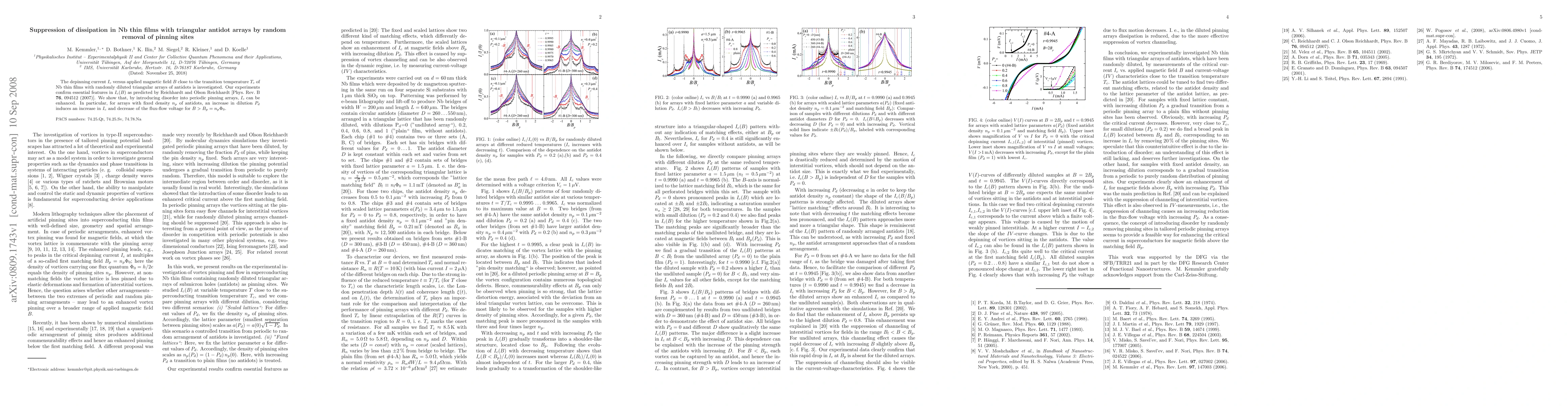 This paper investigates how random removal of pinning sites in Nb thin films with triangular antidot arrays enhances the depinning current Ic under applied magnetic fields near Tc. The study confirms predictions that disorder in periodic pinning arrays can increase Ic and decrease flux-flow voltage for fields exceeding a critical value.
