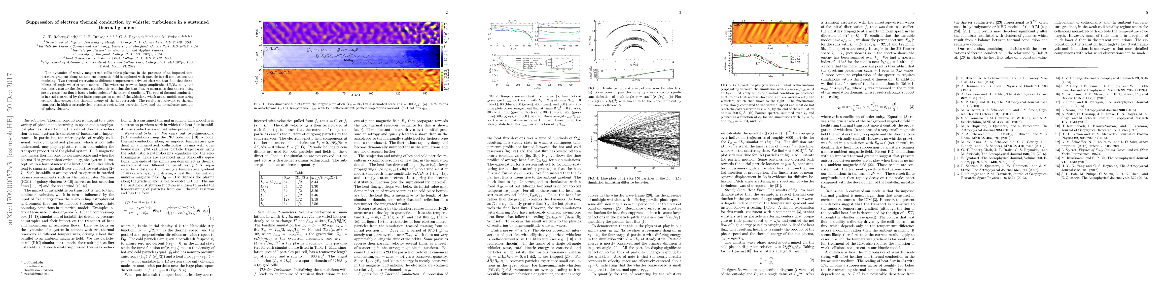 The dynamics of weakly magnetized collisionless plasmas in the presence of an imposed temperature gradient along an ambient magnetic field is explored with particle-in-cell simulations and modeling. Two thermal reservoirs at different temperatures drive an electron heat flux that destabilizes off-angle whistler-type modes. The whistlers grow to large amplitude, $\delta B / B_{0} \simeq 1$, and resonantly scatter the electrons, significantly reducing the heat flux. A surprise is that the resulting steady state heat flux is largely independent of the thermal gradient. The rate of thermal conduction is instead controlled by the finite propagation speed of the whistlers, which act as mobile scattering centers that convect the thermal energy of the hot reservoir. The results are relevant to thermal transport in high $\beta$ astrophysical plasmas such as hot accretion flows and the intracluster medium of galaxy clusters.
