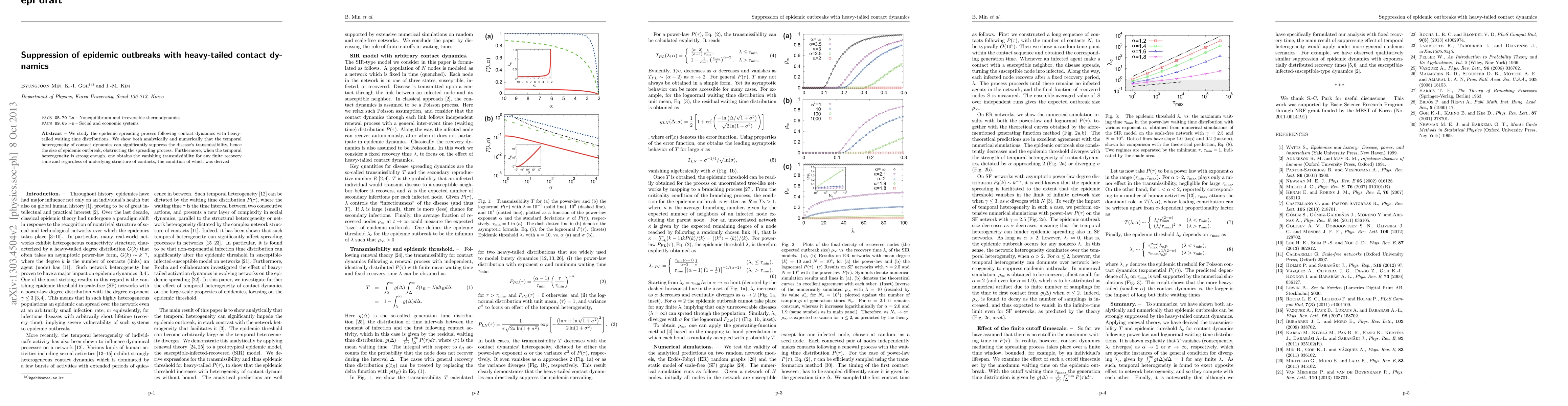 Research shows that temporal heterogeneity in contact dynamics can suppress epidemic outbreaks by reducing disease transmissibility. This effect is strong enough to cause vanishing transmissibility for any finite recovery time, regardless of the underlying structure of contacts.