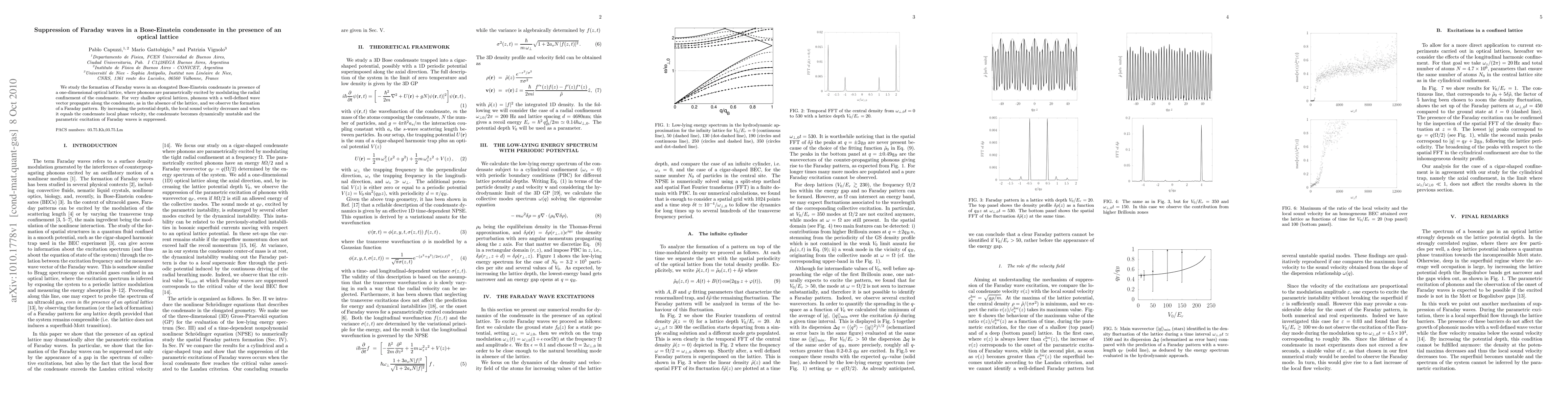 This study investigates Faraday wave formation in a Bose-Einstein condensate within a one-dimensional optical lattice, finding that shallow lattices allow phonon excitation and Faraday pattern formation. As the lattice depth increases, the suppression of Faraday waves occurs when the local sound velocity matches the condensate's phase velocity, leading to dynamic instability.