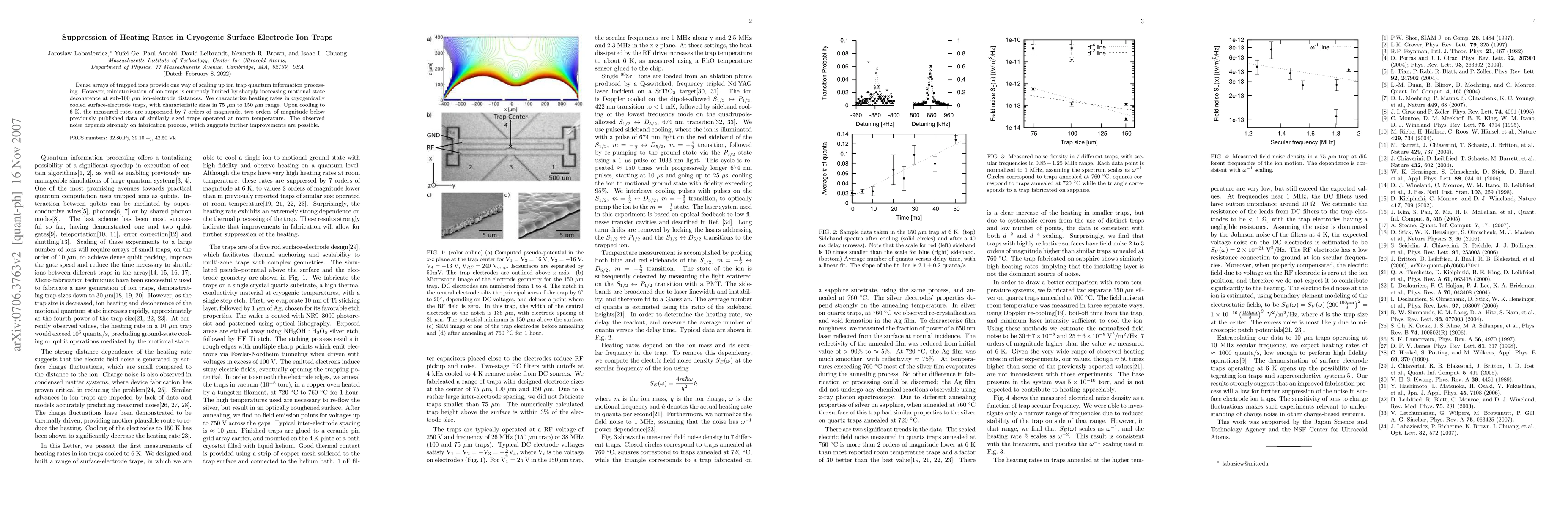 This study investigates heating rates in cryogenically cooled surface-electrode ion traps, finding a 7-order reduction upon cooling to 6 K. Fabrication process impacts noise, indicating potential for further suppression.