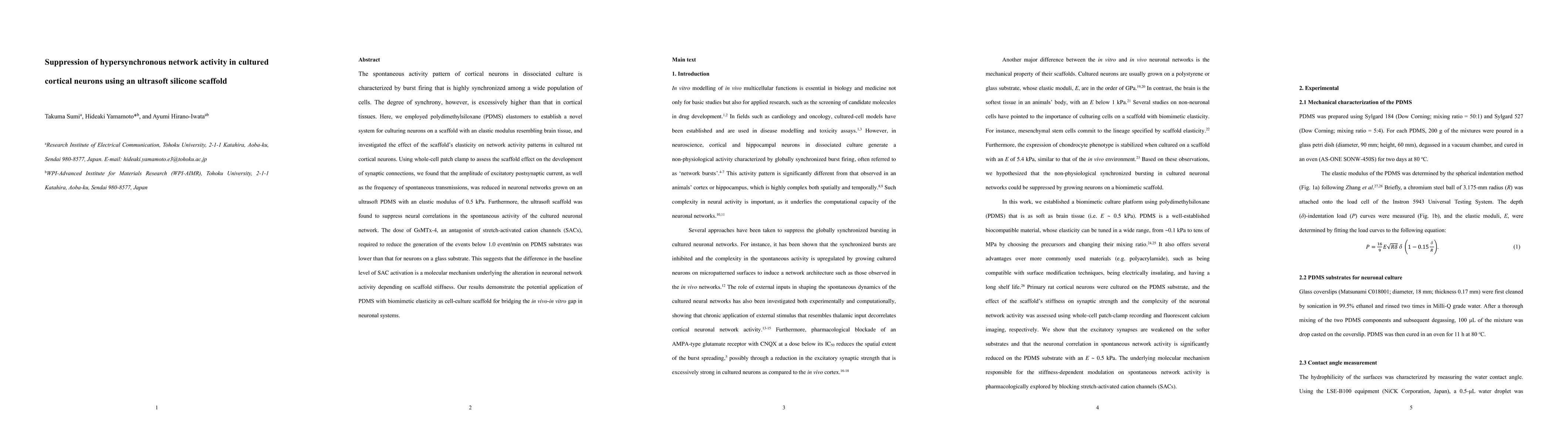 This study investigates how an ultrasoft silicone scaffold with an elastic modulus similar to brain tissue can suppress hypersynchronous network activity in cultured cortical neurons. The results show that the scaffold reduces excitatory synaptic activity and neural correlations, suggesting that scaffold stiffness influences neuronal network behavior through stretch-activated cation channels.