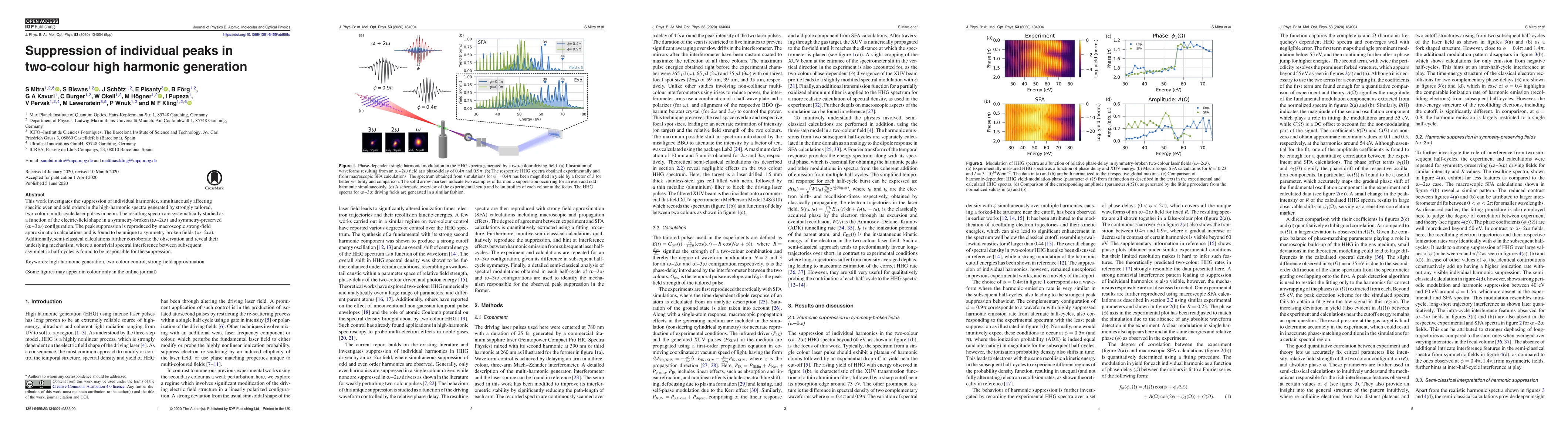 This work investigates the suppression of individual harmonics, simultaneously affecting specific even and odd orders in the high-harmonic spectra generated by strongly tailored, two-colour, multi-cycle laser pulses in neon. The resulting spectra are systematically studied as a function of the electric-field shape in a symmetry-broken ($\omega$-$2\omega$) and symmetry-preserved ($\omega$-$3\omega$) configuration. The peak suppression is reproduced by macroscopic strong-field approximation calculations and is found to be unique to symmetry-broken fields ($\omega$-$2\omega$). Additionally, semi-classical calculations further corroborate the observation and reveal their underlying mechanism, where a nontrivial spectral interference between subsequent asymmetric half-cycles is found to be responsible for the suppression.