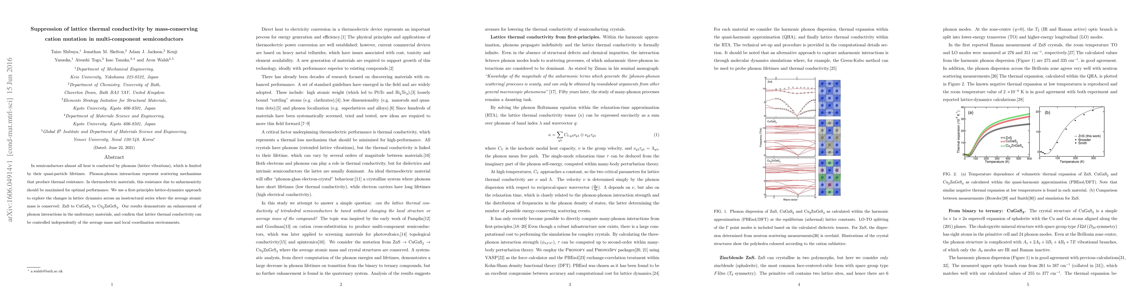 Researchers used a first-principles approach to study how changes in atomic mass affect lattice thermal conductivity in semiconductors. They found that adding a cation mutation can increase phonon interactions and control thermal conductivity independently of average mass and coordination environments.