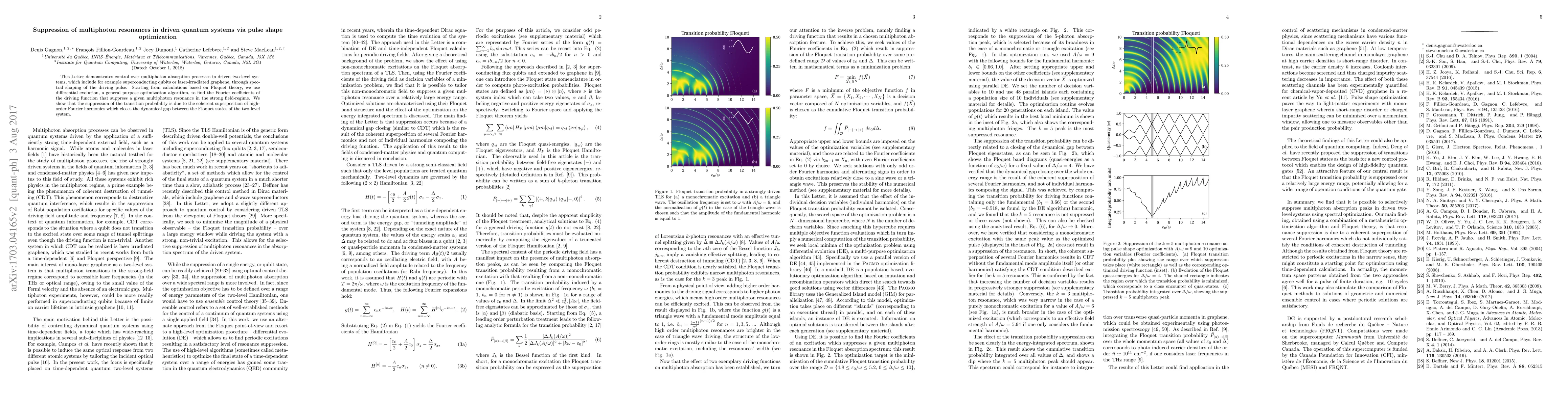 This research optimizes pulse shapes to suppress multiphoton absorption in driven quantum systems using spectral shaping and differential evolution, demonstrating the closing of the dynamical gap between Floquet states through coherent superposition of high-order harmonics.