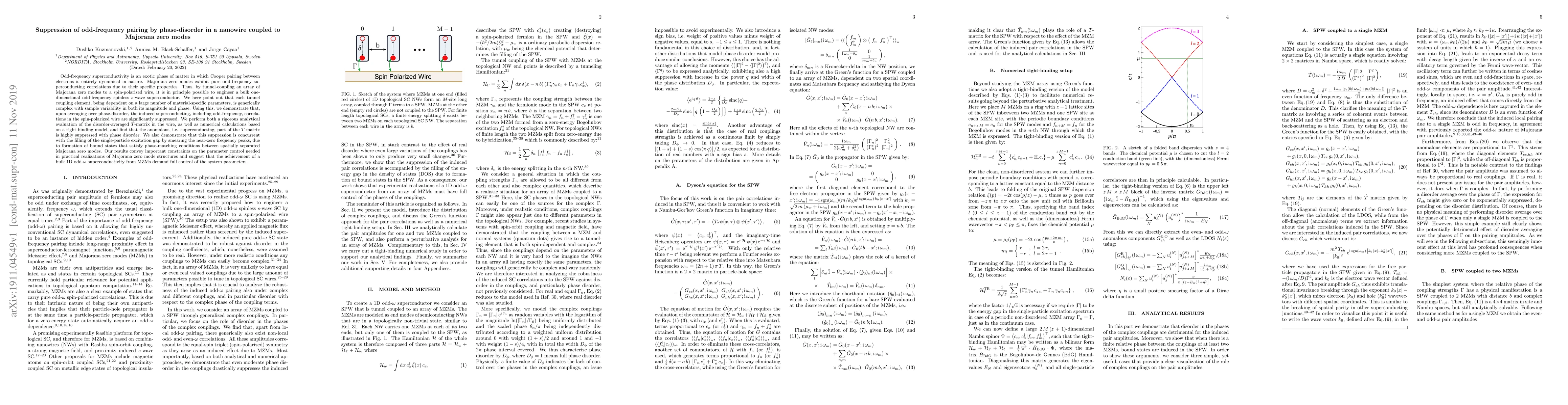 This paper investigates how phase disorder in tunnel couplings between a spin-polarized nanowire and Majorana zero modes suppresses odd-frequency superconducting pairing. Analytical and numerical evaluations show that phase disorder significantly reduces the superconducting correlations and fills the single-particle excitation gap, highlighting the need for precise parameter control in Majorana zero mode structures.