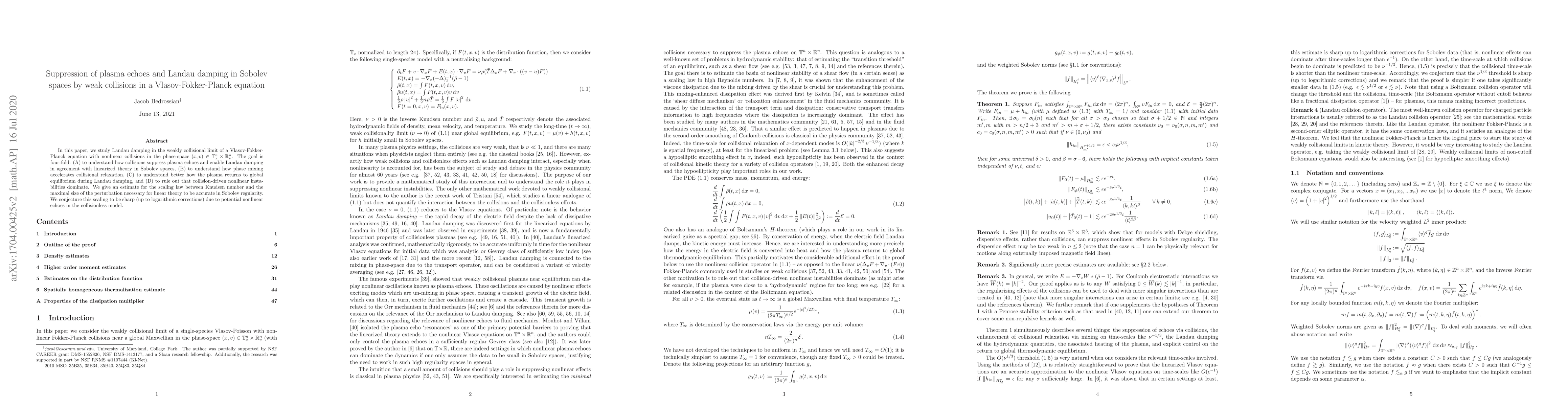 This paper investigates how weak collisions in a Vlasov-Fokker-Planck equation suppress plasma echoes and enable Landau damping, while also exploring the role of phase mixing and nonlinear instabilities.