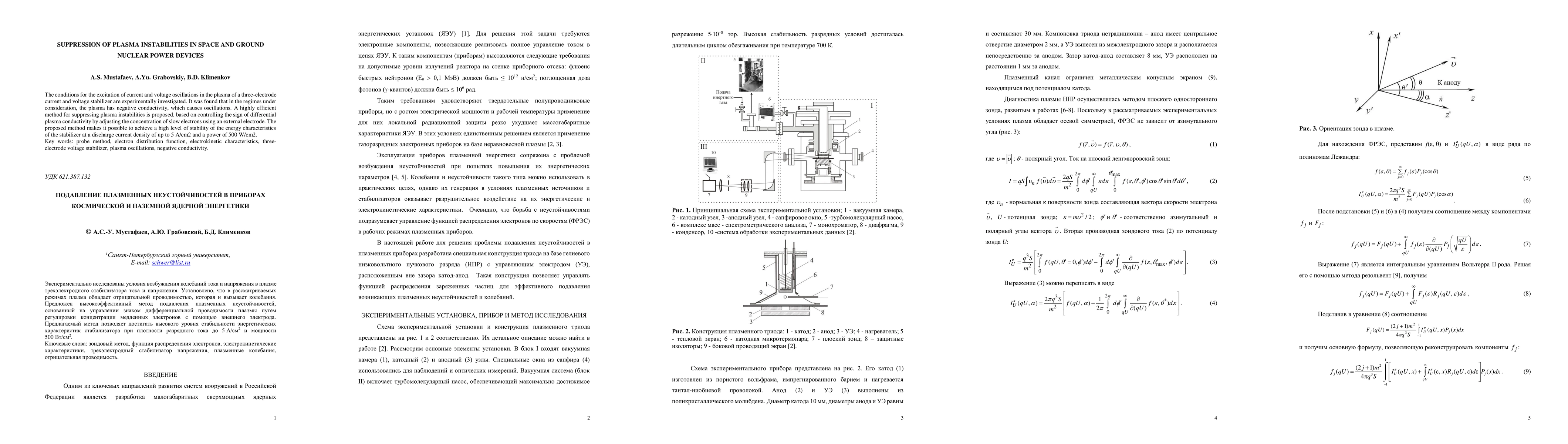 The conditions for the excitation of current and voltage oscillations in the plasma of a three-electrode current and voltage stabilizer are experimentally investigated. It was found that in the regimes under consideration, the plasma has negative conductivity, which causes oscillations. A highly efficient method for suppressing plasma instabilities is proposed, based on controlling the sign of differential plasma conductivity by adjusting the concentration of slow electrons using an external electrode. The proposed method makes it possible to achieve a high level of stability of the energy characteristics of the stabilizer at a discharge current density of up to 5 A/cm2 and a power of 500 W/cm2.