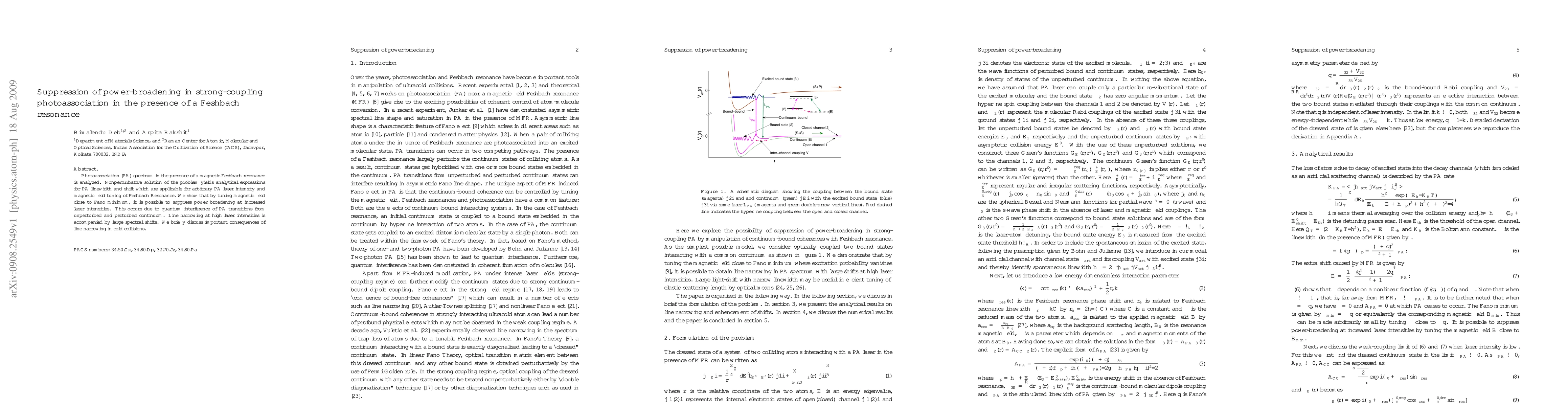 This paper analyzes the photoassociation spectrum near a magnetic Feshbach resonance, showing that tuning the magnetic field close to the Fano minimum can suppress power broadening at high laser intensities due to quantum interference effects. This results in significant spectral shifts and line narrowing, with implications for cold collision studies.