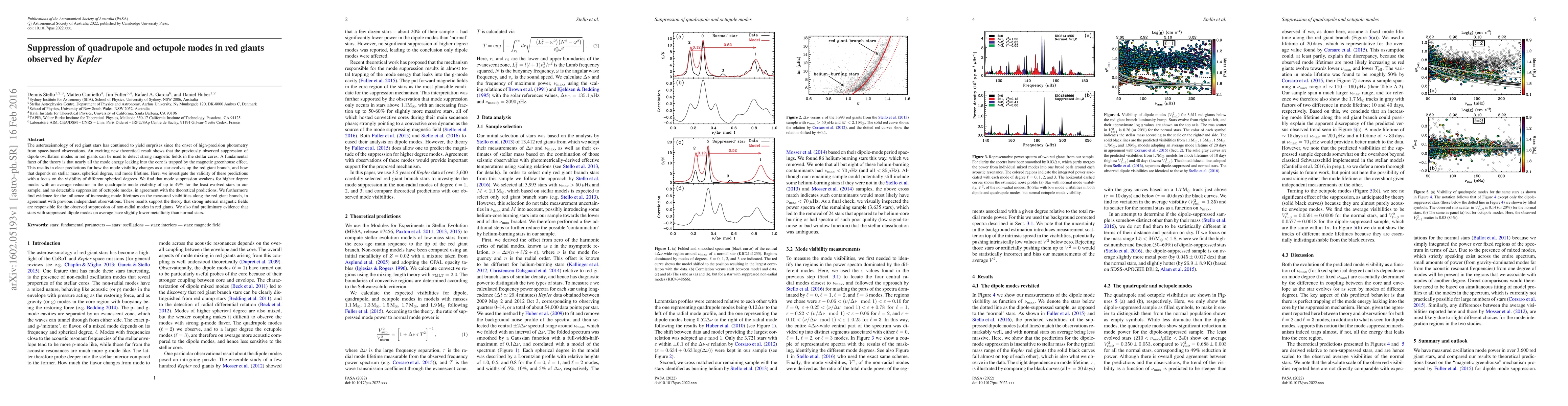 This study investigates the suppression of quadrupole and octupole oscillation modes in red giants observed by Kepler, confirming theoretical predictions that strong magnetic fields in stellar cores cause this suppression. The research finds that quadrupole mode visibility is significantly reduced, while octupole modes show no detectable suppression, supporting the theory of magnetic field influence.