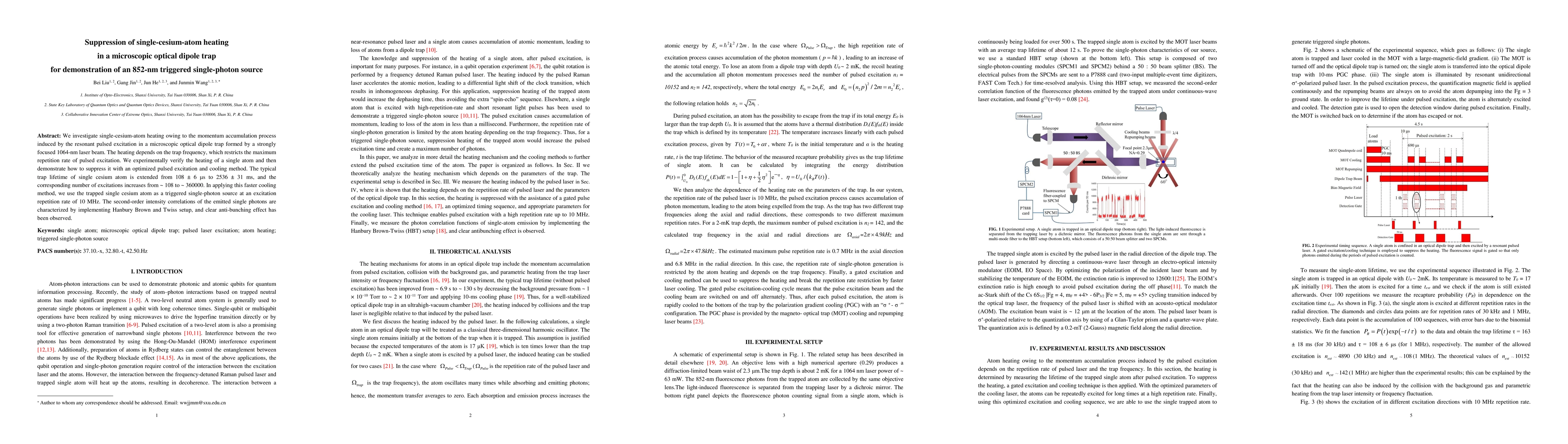 The research investigates single cesium atom heating in a microscopic optical dipole trap using resonant pulsed excitation. Heating is suppressed with an optimized pulsed excitation/cooling method.