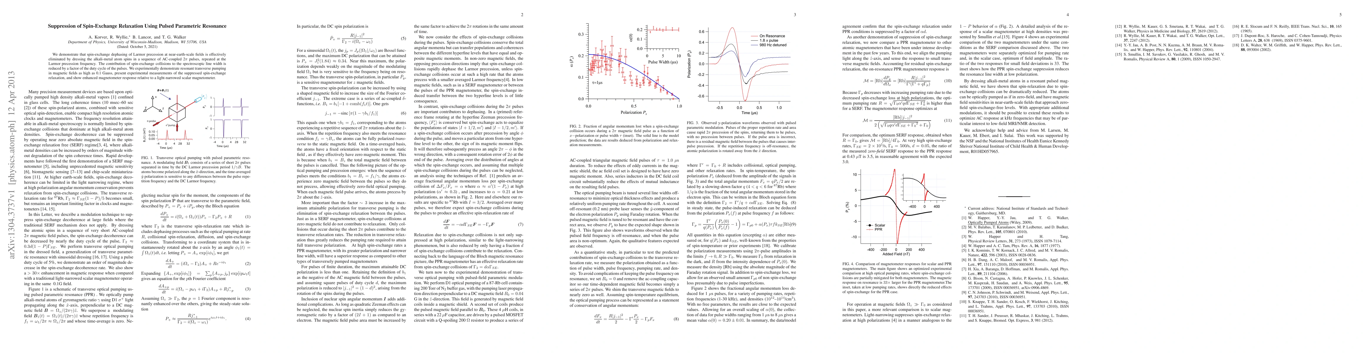This paper demonstrates the suppression of spin-exchange relaxation in alkali-metal atoms using a sequence of AC-coupled 2-pi pulses at the Larmor precession frequency, effectively reducing the spectroscopic line width by the duty cycle of the pulses. This method enhances magnetometer response compared to traditional light-narrowed techniques.